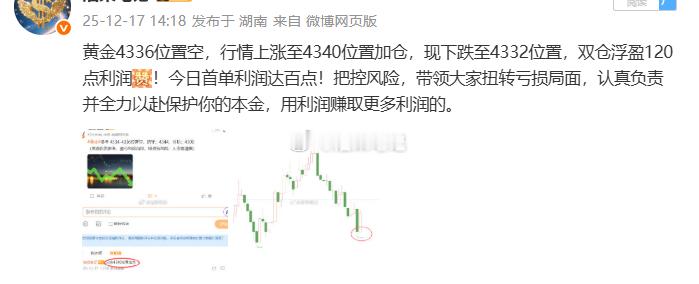 黄金4336位置空,4340位置加仓,现行情下跌至4320位置,空单双仓顺利浮盈360点利润!可护利减持!连胜持续中!实力是盈利的基础,稳健是获利的根本,机会靠自己争取。黄金金价