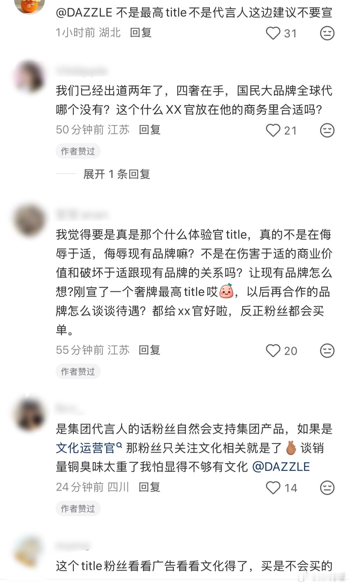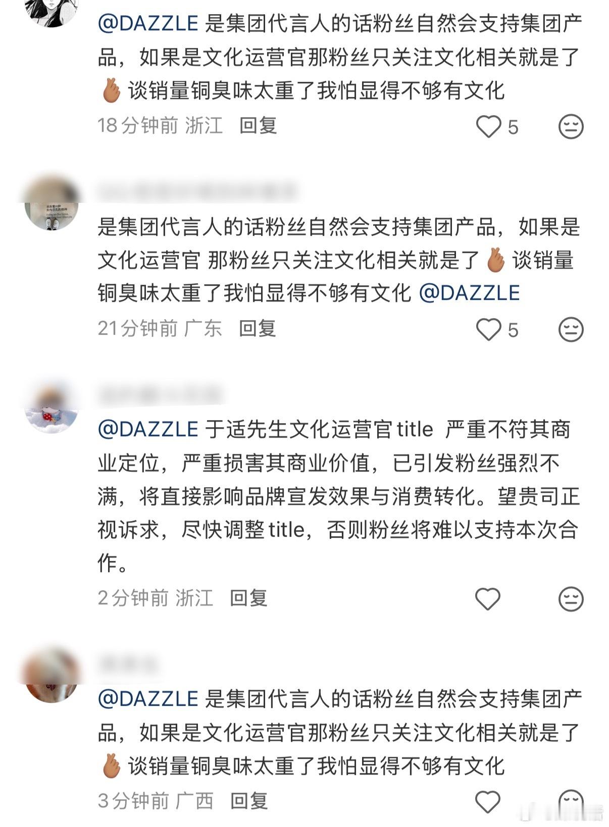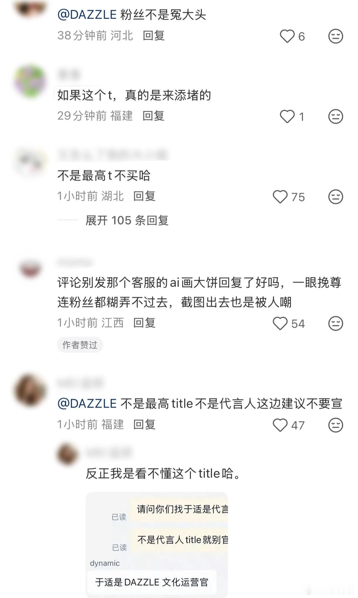 于适新商务DAZZLE预热,因为title不是代言人,已经被粉丝提前抵制了