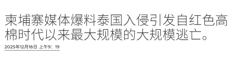 12月16日,柬埔寨媒体开始唱衰了,《高棉时报》说:泰国的入侵,引发了柬埔寨近50万百姓流离失所。还说这是自红色高棉时代以来,柬埔寨境内最大规模的平民逃亡。 这事儿透着蹊跷。所谓“泰国入侵”的说法,至今没有得到两国官方证实,反而更像一场被放大的边境争端。打开东南亚地图就能看到,柬泰边境线长达800多公里,其中柏威夏寺周边区域的领土争议已持续百年,2008年曾爆发过持续数月的武装冲突,但从未出现过“50万平民逃亡”的量级。联合国难民署12月17日发布的实时数据显示,柬泰边境登记的流离失所者仅为1.2万人,且多集中在柏威夏省边境村落,与《高棉时报》的说法相差近40倍,这种数据上的巨大反差,不得不让人怀疑报道的客观性。 边境冲突确实存在,但性质绝非“入侵”。根据柬泰两国国防部的联合声明,此次摩擦源于泰国边防军在争议区域修建巡逻道路,柬埔寨方面认为此举违反了2011年国际法院的裁决,双方发生短暂交火,造成3名士兵受伤,随后均已后撤至缓冲区。冲突范围仅局限于3平方公里的无人地带,周边村落虽有居民暂时转移,但多是前往附近城镇投靠亲友,并非大规模“逃亡”。一位在柏威夏省经营小餐馆的柬埔寨村民通过社交平台发声,称“只是听到几声枪响,政府就让我们暂时离开,根本没有传言中那么可怕,很多人带着行李在镇上待了两天就回去了”。 《高棉时报》的夸张表述,背后可能藏着复杂的媒体立场。这家媒体虽名义上是独立报刊,但股权结构中包含柬埔寨反对党背景的资本,近年来多次在柬泰领土争端、经济合作等议题上发布偏向性报道。此次刻意放大难民数量,或许是想借边境问题向洪森政府施压——柬埔寨将于2025年举行大选,反对党一直试图以“外交软弱”攻击现政府,而“50万难民”的说法恰好能制造社会恐慌,动摇民众对政府的信任。 泰国方面的反应也印证了“入侵”说法的站不住脚。泰国总理赛塔·他威信12月18日在内阁会议上明确表示,“泰国从未有过入侵柬埔寨的意图,边境问题将通过外交渠道解决”,同时下令暂停争议区域的工程建设,邀请柬埔寨举行双边会谈。泰国国防部更是公布了边境监控画面,画面中显示双方军队保持距离,边境口岸正常通行,不存在大规模军事行动的迹象。这种克制的应对方式,与“入侵”的严重性质完全不匹配。 红色高棉时代的难民潮是柬埔寨人的集体创伤,用这个历史记忆做文章更显不妥。上世纪70年代,红色高棉政权的暴政导致近200万柬埔寨人死亡或逃亡,那种全国性的动荡与此次局部边境摩擦有着本质区别。将1万多人的暂时转移等同于“自红色高棉以来最大规模逃亡”,不仅是对历史的不尊重,更是在利用民众的创伤制造焦虑。柬埔寨历史学者占达里在接受采访时直言,“这种比喻非常不负责任,会让年轻一代对历史产生误解,也不利于两国通过和平方式解决争端”。 国际社会的反应也相对冷静。东盟秘书处12月19日发表声明,呼吁柬泰双方保持克制,通过东盟争端解决机制沟通,并未提及“入侵”或“大规模难民危机”。中国、越南等周边国家均表示支持两国通过外交途径解决分歧,没有任何国家对“泰国入侵”的说法表示认同。这种国际社会的普遍态度,从侧面说明《高棉时报》的报道缺乏事实依据,难以获得国际社会的认可。 柬埔寨国内的舆论也出现分化。主流媒体如《柬埔寨日报》《金边邮报》均采用了联合国难民署的数据,客观报道了边境冲突的情况,批评《高棉时报》“夸大其词制造恐慌”。柬埔寨政府发言人帕西潘更是直接点名谴责,称“部分媒体为了博眼球,不惜编造虚假信息,破坏国家稳定和双边关系,这种行为将受到法律追究”。越来越多的柬埔寨民众也通过社交媒体发声,质疑报道的真实性,呼吁“理性看待边境问题,不要被虚假信息误导”。 领土争端是国与国之间的常见问题,柬泰两国有着长期的合作基础,完全有能力通过和平方式解决。2011年国际法院对柏威夏寺领土争端的裁决,两国均表示接受并遵守,此后多年保持了边境的总体和平。此次短暂摩擦本可通过双边会谈妥善处理,却被部分媒体刻意放大,不仅不利于问题的解决,还可能激化民族矛盾,损害两国的经贸、旅游等领域合作——要知道,泰国是柬埔寨第二大贸易伙伴,2024年双边贸易额达180亿美元,边境稳定对两国经济发展至关重要。 媒体报道应当坚守客观真实的底线,尤其是在涉及国家关系、民众安全的议题上,更不能为了立场或利益编造虚假信息。《高棉时报》的夸张报道,不仅损害了自身的公信力,也给柬泰关系蒙上了阴影。希望两国能不受虚假信息影响,坚持通过对话协商解决分歧,让边境回归和平稳定,让民众不必再受恐慌之扰。 各位读者你们怎么看?欢迎在评论区讨论。