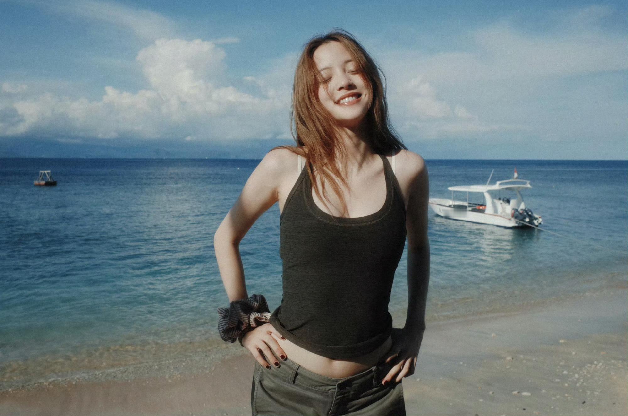 刘亦菲十七八岁时在海边游玩留下的一组照片,肚子上好多肉肉啊!