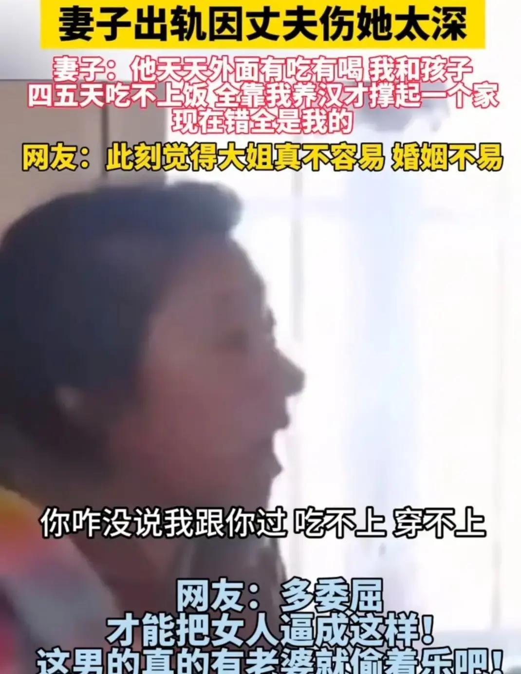 一女子发帖说丈夫五年不往家拿一分钱,孩子饿得哭,她饿到第四天,只好跟隔壁小店老板“换”了三百块买奶粉。 帖子删了,真假没人认领,可评论区里上万条“我也这样熬了十年”,看得人后背发凉。 男人把家当免费旅馆,女人连泡面都要赊账,最后锅全甩给出轨两个字。 真要饿到眼发黑,道德能顶饱吗? 没人想歌颂背叛,可更不想歌颂把老婆逼到绝路的“好丈夫”故事真假不重要,重要的是同款婚姻天天在身边直播,大家却只会劝“忍忍就过去” 婚姻不是避难所,是合伙公司,一方长期逃单,另一方只能砸锅卖铁,甚至卖自己。 别把沉默当体面,把责任推干净的人,才最该被戳脊梁骨。