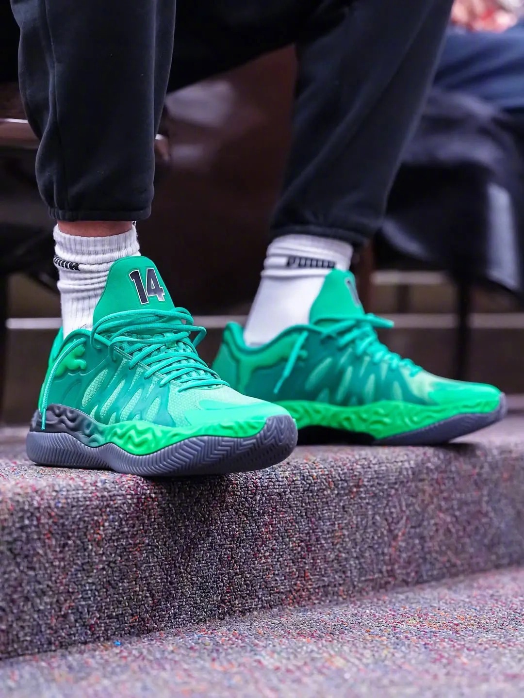 PUMA Hali 1「Oshkosh North」PE哈利伯顿为母校奥什科什北高中带来了专属配色的Hali 1 PE,他曾在2018年带领奥什科什北队夺得过州冠军,他的14号球衣也已经被球队退役,并出现在了这双鞋的鞋舌上🟢