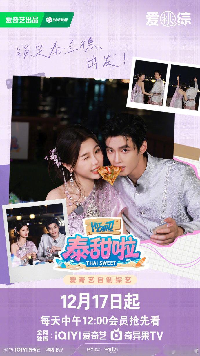 泰甜啦在桃12月17日中午12点开播,异域星光下的泰兰德之旅,虞书欣何与的甜蜜互动像海风一样清新,路人看了都忍不住想加入这场爱的冒险。泰甜啦定档