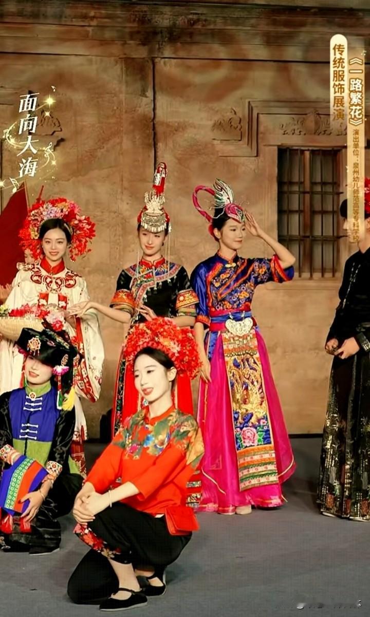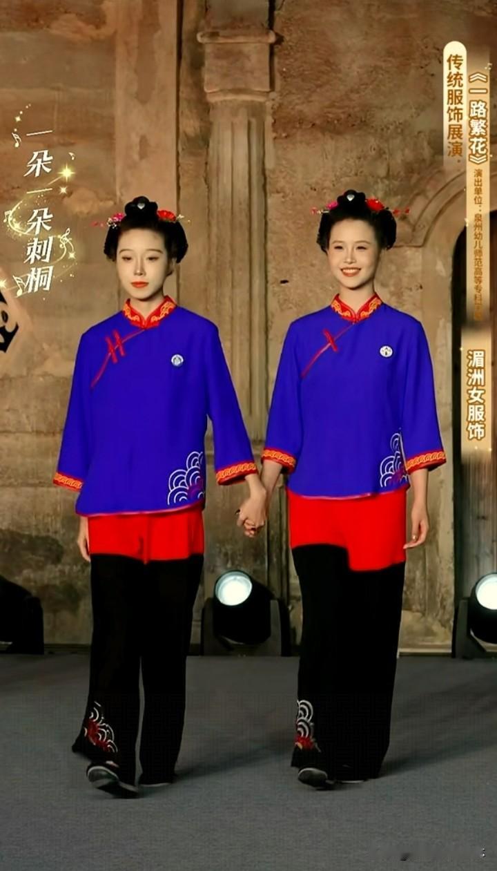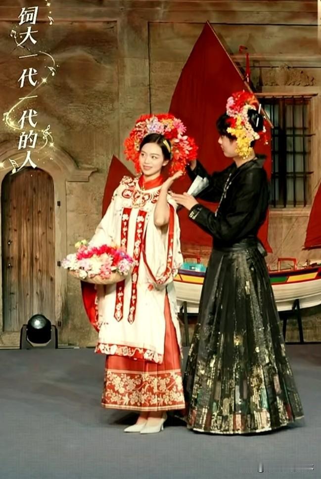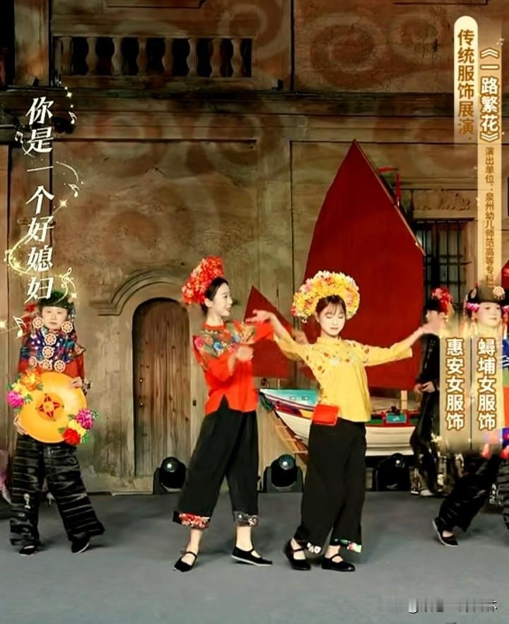 美翻了,福建泉州传统服饰展。 主播小贝手持一篮子花美艳明媚,鹏鹏戴簪花头饰手持扇子风流倜傥。 看了福建服饰走秀才知道服装的款式多,而且色彩以红、蓝、绿、黄等鲜艳色彩为主,即使是分体衣服,黑色的裤子也是搭配视觉冲击力很强的衣服,从服饰上能够感受到福建当地人奔放的性格特点。 观众的情绪也被精美的服饰点燃,起哄董宇辉也带簪花。董宇辉自嘲头太大,如果戴簪花就得像非洲雄狮。 曾经赵丽颖体验簪花带动簪花爆火,邓亚萍也体验簪花技艺并助力推广 ,今日一见福建泉州的美景风土人情精彩的节目,作为北方观众确实心动心驰神往。