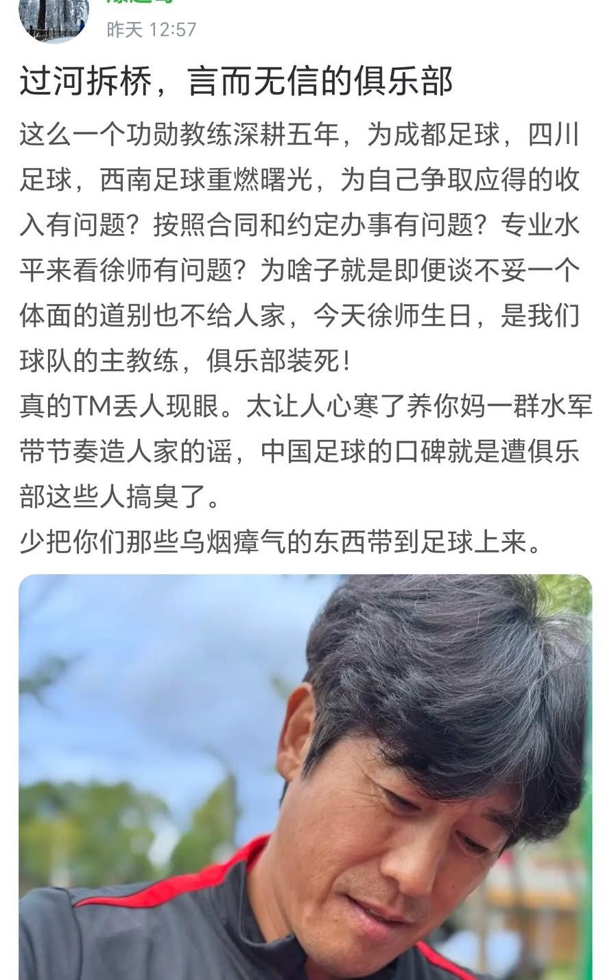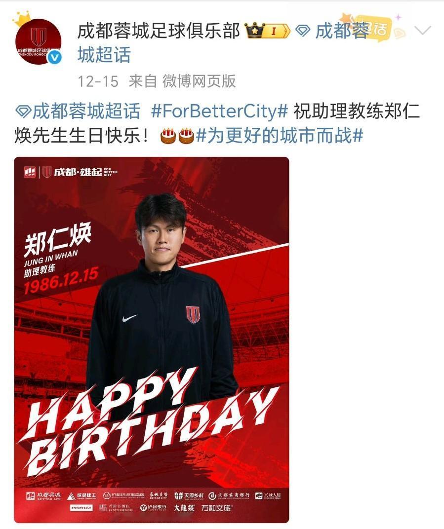 成都蓉城没有给徐正源发生日祝福,引蓉城球迷不满! 12月17日是成都蓉城主教练徐正源的55岁生日,但成都蓉城官方没有像过去几年那样给徐正源送上祝福的海报。而前几天助理教练生日,成都蓉城官方还发了生日祝福。就因为这几天谈判不顺利,大概率会好聚好散了,就不打了生日祝福了。有些球迷质疑成都蓉城俱乐部的格局。 有成都蓉城球迷自发组织在社媒祝福徐正源生日快乐,无论续约不续约,徐正源都会在成都蓉城俱乐部历史中,占据很重要的一部分,相互之间多一份尊重岂不是更好。 成都蓉城