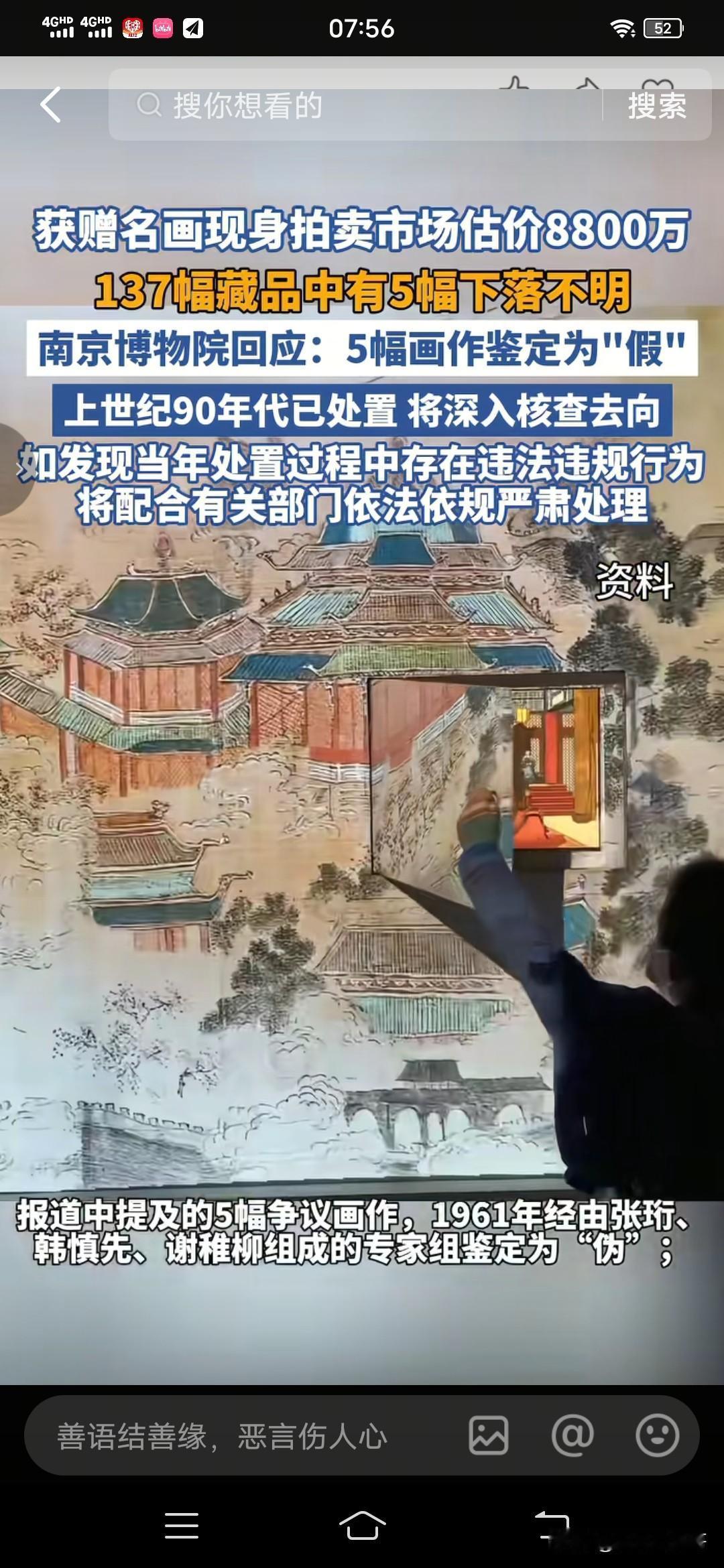 南京博物馆跟捐赠者打官司这个事儿无论结果如何,南京博物馆都是不厚道,好比农夫和蛇, 令捐赠者寒心 。 就算专家组经过鉴定那几组几件画作确实是赝品, 是不是应该告知捐赠者;结果捐赠者的后人发现有几幅画不见了,你博物馆才来说那几幅画经过专家组鉴定是赝品,按照我的管理办法进行了处置 , 这是典型的农夫和蛇的忘恩负义心态, 完全把捐赠者当成了一个不相干的人 。 捐赠者要求南京博物馆提供那几件流失的赝品画作去向,结果南京博物馆却告知不了。 巧合的事丢失的那几幅画中竟然疑似有一幅出现了拍卖行,以8800万的高价在拍卖, 不得不让人怀疑是暗度陈仓 。 捐赠者的后人没法了,要求法院强制博物博物馆告知那几件赝品画的去向。 无论结果怎样,主动告知跟强制要告知 它的性质不一样。 前者是态度, 后者是寒心。 今后谁还敢把画作捐给你南京博物馆? “南京博物馆的操作真是不可理喻,颠覆了我的认知 ”,信任的坍塌 ,捐赠者的愤怒,将令很多捐赠者止步 !
