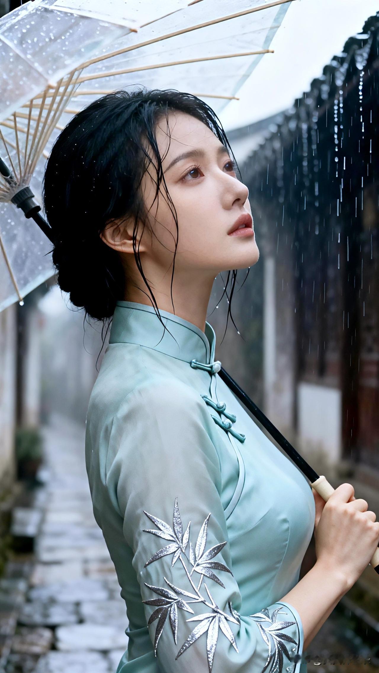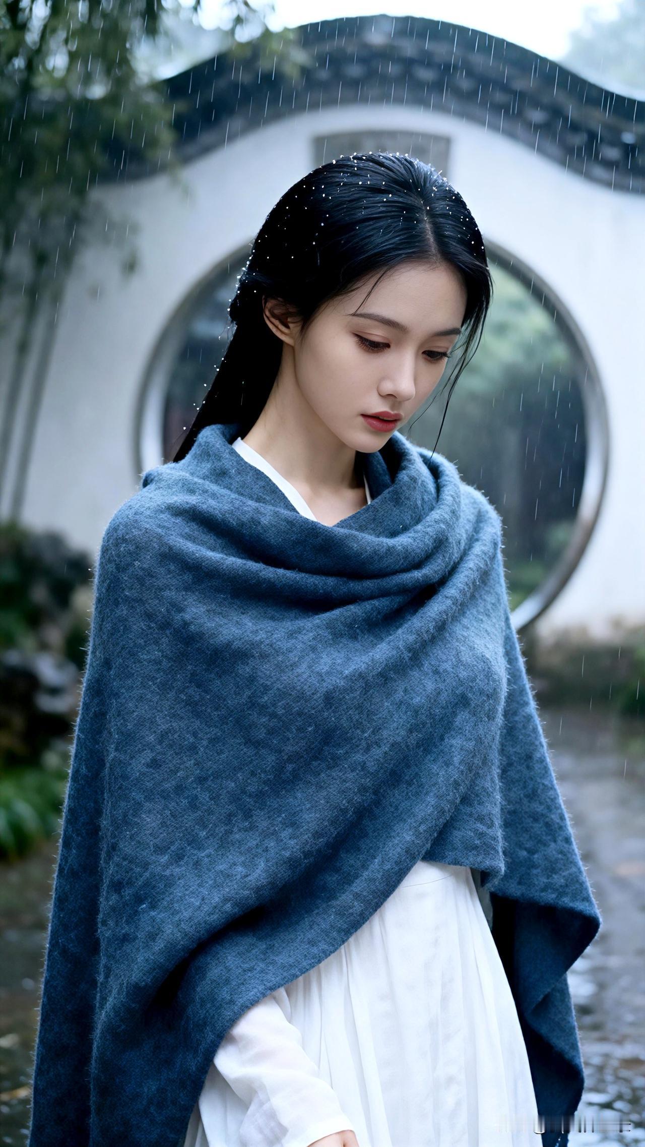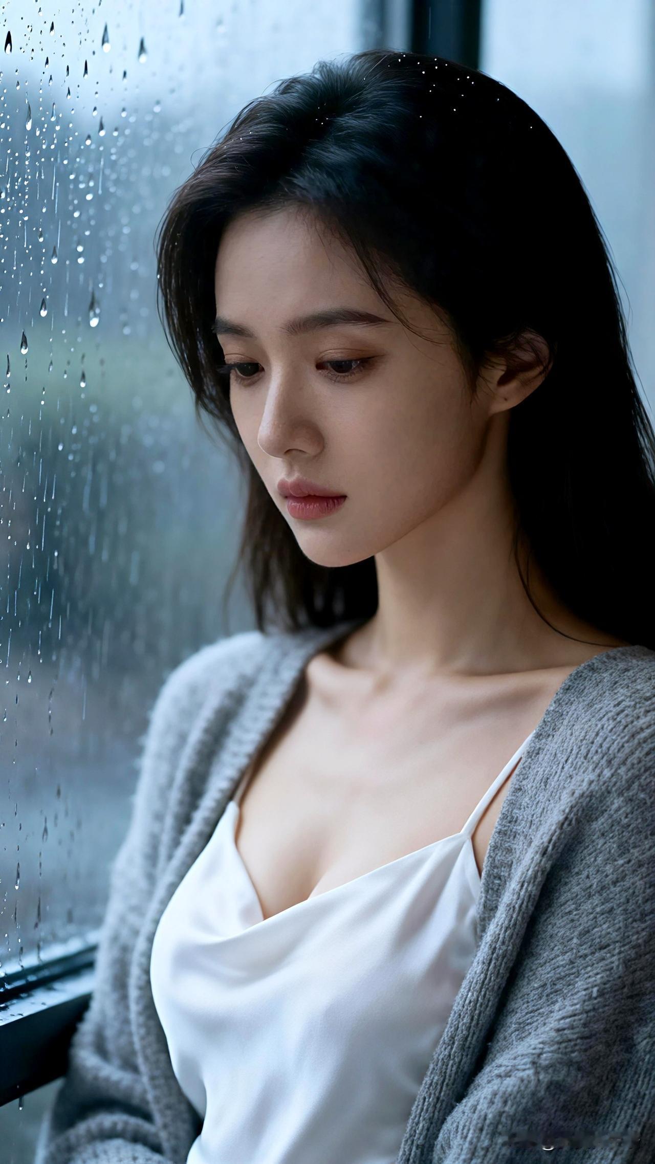 雨中独坐,妆容如画却难掩眼底忧伤,时光静默成诗。 壁纸 伤感