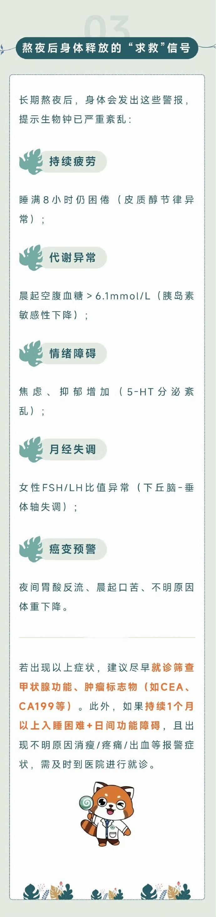 你是不是也经常熬夜,熬完后还心存侥幸,觉得自己年轻身体扛得住?但你知道吗,长期熬夜后,身体会释放出5个求救信号,这可不是危言耸听! 持续疲劳,哪怕睡满8个小时还是困得不行;晨起空腹血糖超过6.1mmol/L,代谢出现异常;情绪变得焦虑、抑郁,仿佛被坏情绪紧紧缠绕;女性月经失调,身体的内分泌系统开始“罢工”;更可怕的是,夜间胃酸反流、晨起口苦、不明原因体重下降,这些可能是癌变的预警。看到这些,是不是后背发凉? 很多人觉得,熬夜是为了工作、为了娱乐,是现代生活的无奈之举。可当身体发出这些警报时,我们才如梦初醒,原来熬夜正在一点点吞噬我们的健康。也许你会说,我没办法不熬夜啊,工作压力那么大,不熬夜怎么完成任务。但其实,这只是我们给自己找的借口。 转变观念,合理安排时间,提高工作效率,我们完全可以在不熬夜的情况下完成工作。而且,规律作息带来的好处是巨大的,精神状态好了,工作效率也会提高,生活也会变得更加美好。 别再对身体的求救信号视而不见啦!从现在开始,调整作息,给身体一个恢复的机会。毕竟,健康才是最大的本钱。 屏幕前的你,有过熬夜后身体不舒服的经历吗?你打算怎么改变自己的作息呢?快来评论区分享你的故事和计划吧!社会百态