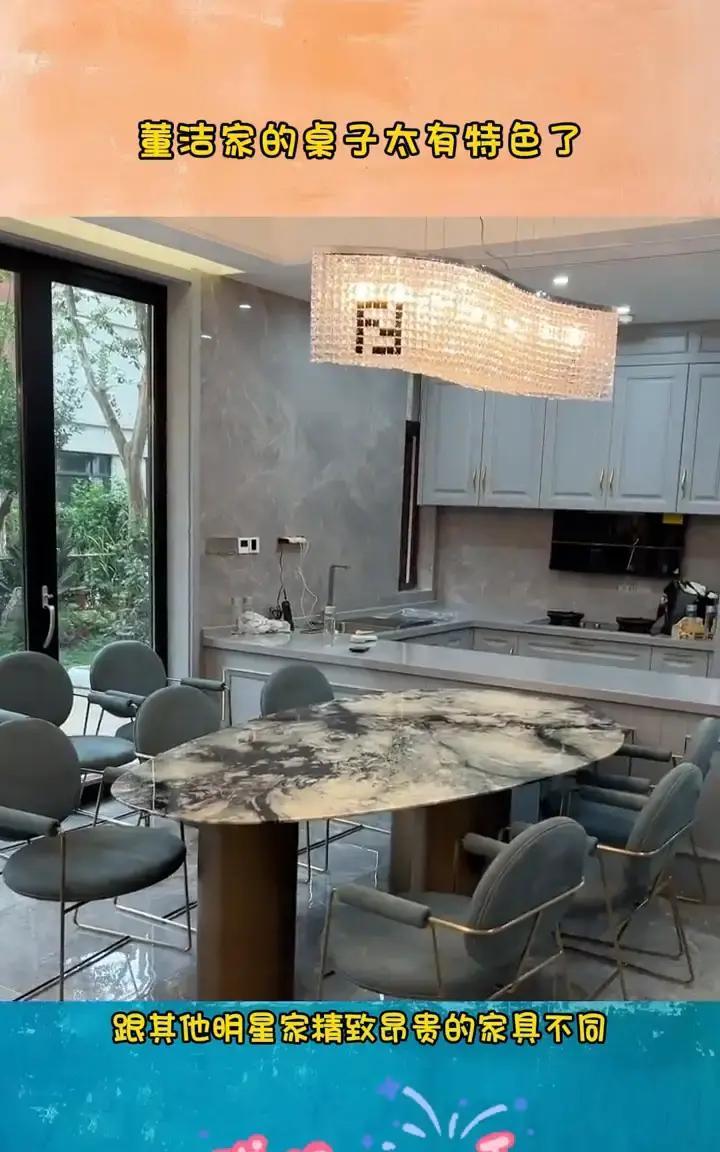 别再学网红装修奶油风了。董洁家餐桌中间那道缝,让所有奢牌家具显摆精瞬间破防。