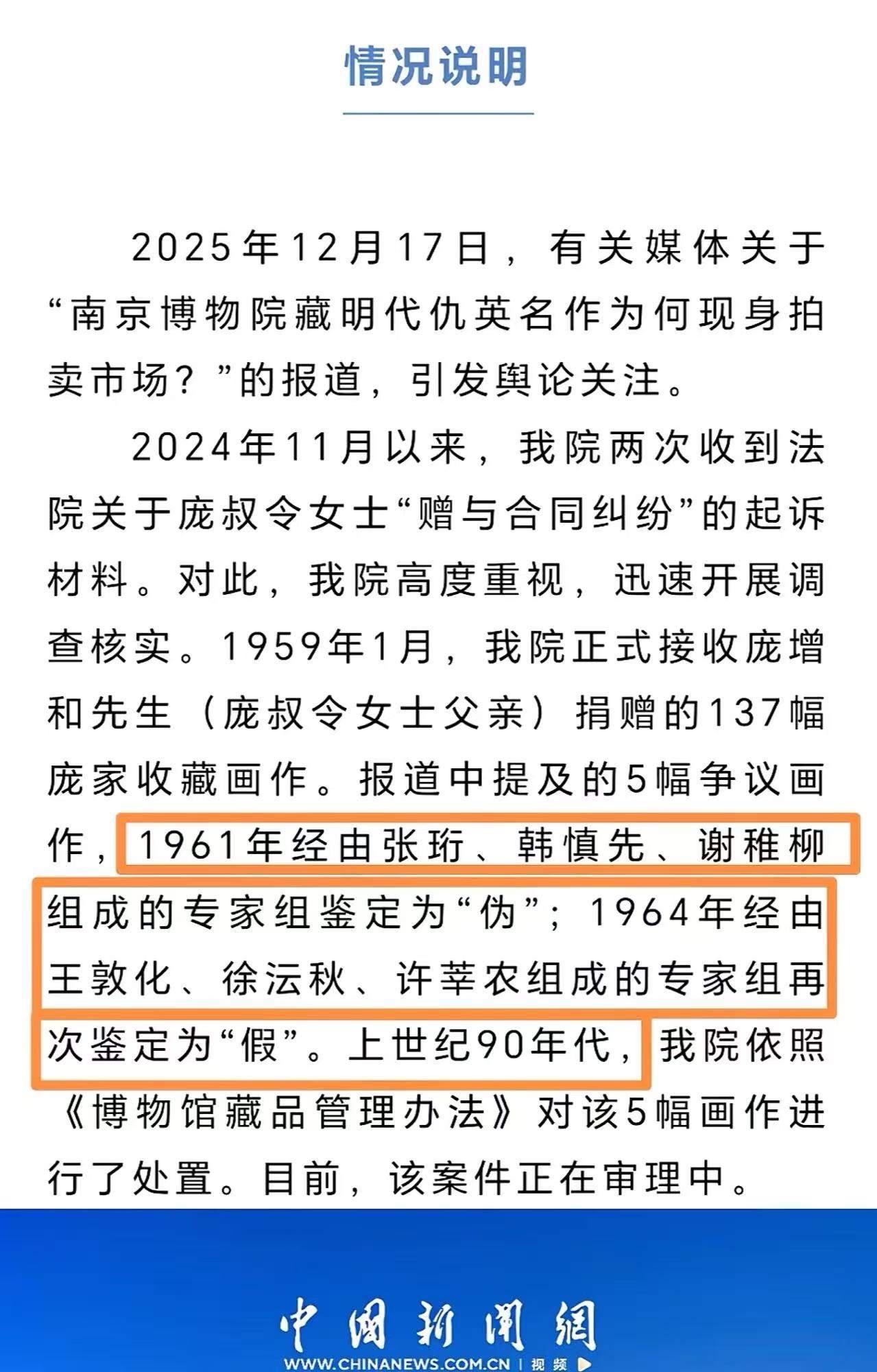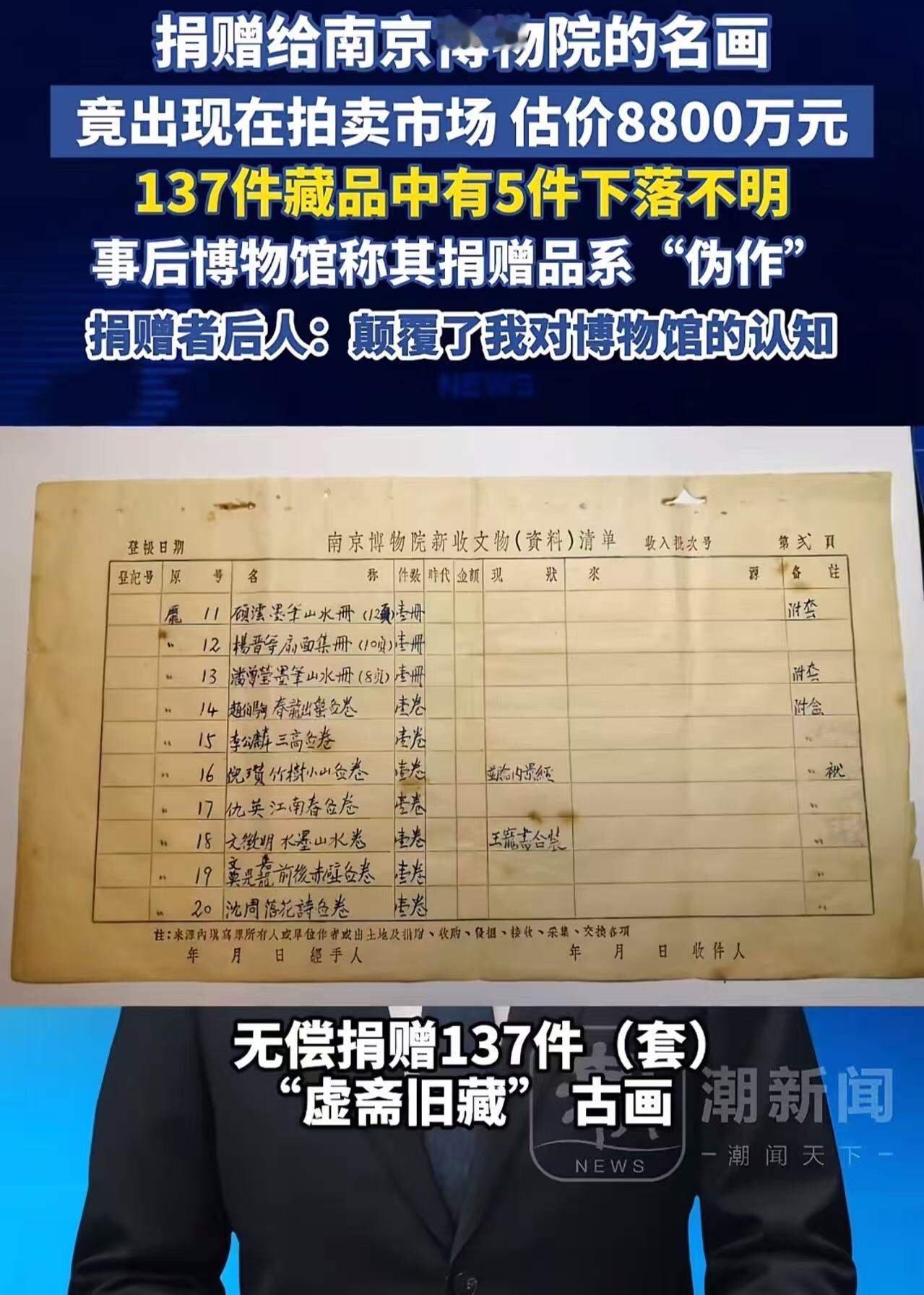 66年前捐赠给南京博物馆的名画,却以8800万的价格出现在拍卖市场。好家伙,还真是“故宫一件我一件啊”,虽然在文物部门的干预下,这件藏品最终被撤拍,但是更大的问题却来了!捐赠者后人:颠覆了我对博物馆的认知! 66年前,一幅被捐赠给南京博物馆的名画,竟然在拍卖市场上以8800万的天价浮出水面。这一幕,犹如一记重锤,狠狠敲在许多人的心头。曾经以为,博物馆是收藏和守护文化瑰宝的圣殿,是传承历史的灯塔,而如今,这样的“名画”竟然能以如此惊人的价格“流入”市场,难免让人心生疑问:我们所信赖的博物馆,真的只是“守护者”吗?还是说,背后隐藏着一些不为人知的秘密? “好家伙,还真是‘故宫一件我一件’啊!”有人调侃道,但这句话背后,隐藏的是对文化遗产管理的深刻反思。虽然在文物部门的干预下,这件藏品最终被撤拍,似乎一切都回到了原点,但更大的问题却浮出了水面——文化的“价值”被市场化、商品化的阴影笼罩着。 而让人扼腕叹息的是,捐赠者的后人竟然公开表示:“颠覆了我对博物馆的认知。”这句话,犹如一声惊雷,击中了许多人的心。他们的家族,曾经慷慨捐赠这幅画,或许是出于对文化的热爱,或许是为了保护那份记忆。而今,看到它被高价“出卖”在拍卖市场,心中那份信任与期待,无疑被狠狠击碎。 这背后,折射出的是一个令人深思的现实:在利益的驱动下,文化遗产的价值,似乎变得模糊不清。有人说,市场的规则是“金钱至上”,但文化的价值,难道也能用金钱来衡量?当一件古老的艺术品,变成了“资产”,它还能保持原有的灵魂吗?它还能代表那段历史、那份记忆吗? 更令人愤怒的是,这样的事件并非孤例。近年来,类似的事情层出不穷。一些珍贵的文物,或在不经意间流入市场,或被“炒作”成“稀世珍品”,让人不禁质疑:我们守护的,是文化的瑰宝,还是一场场无休止的“文化秀场”?而那些真正热爱文化、希望传承的人们,又该如何面对这些变迁? 其实,问题的核心不在于这些艺术品的“价值”有多高,而在于我们对文化的态度。文化,是民族的根,是历史的记忆,是未来的希望。它不应成为市场的“筹码”,也不应被利益所左右。我们需要的是一种尊重,一种守护,一种让文化回归本真的责任感。 这起事件,也许只是冰山一角,但它折射出的是整个社会对文化价值认知的迷失。我们是否还记得,文化的魅力在于它的“无价”?它的意义在于它能跨越时间,穿越空间,连接每一个热爱生活、热爱历史的人。而当我们用金钱去衡量文化,我们也许就失去了最宝贵的东西——那份纯粹的情感和尊重。 所以,面对这些“市场化”的波澜,我们更应该反思:我们到底在守护什么?我们希望传递什么?是的,金钱可以买到很多东西,但买不到那份深藏心底的敬畏和爱。文化的传承,不应只是一场“买卖”,更是一份责任,一份担当。 让我们共同呼吁:保护文化,守护记忆,不让那些曾经属于我们的瑰宝,变成市场的“商品”。因为,真正的价值,永远不会用价格来衡量。南京愽物馆 南京国家文物 南京博物馆拍卖