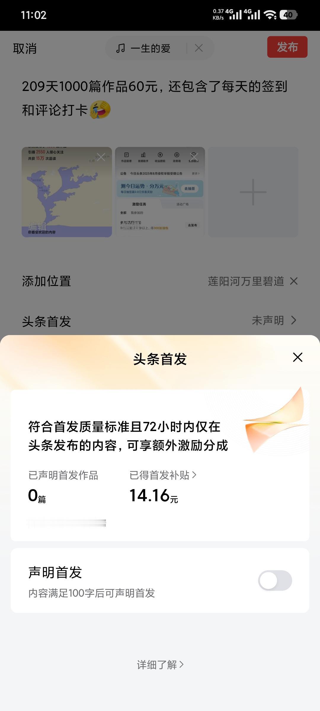 209天1000篇作品60元,还包含了14元的首发补贴和每天的签到与评论打卡[我