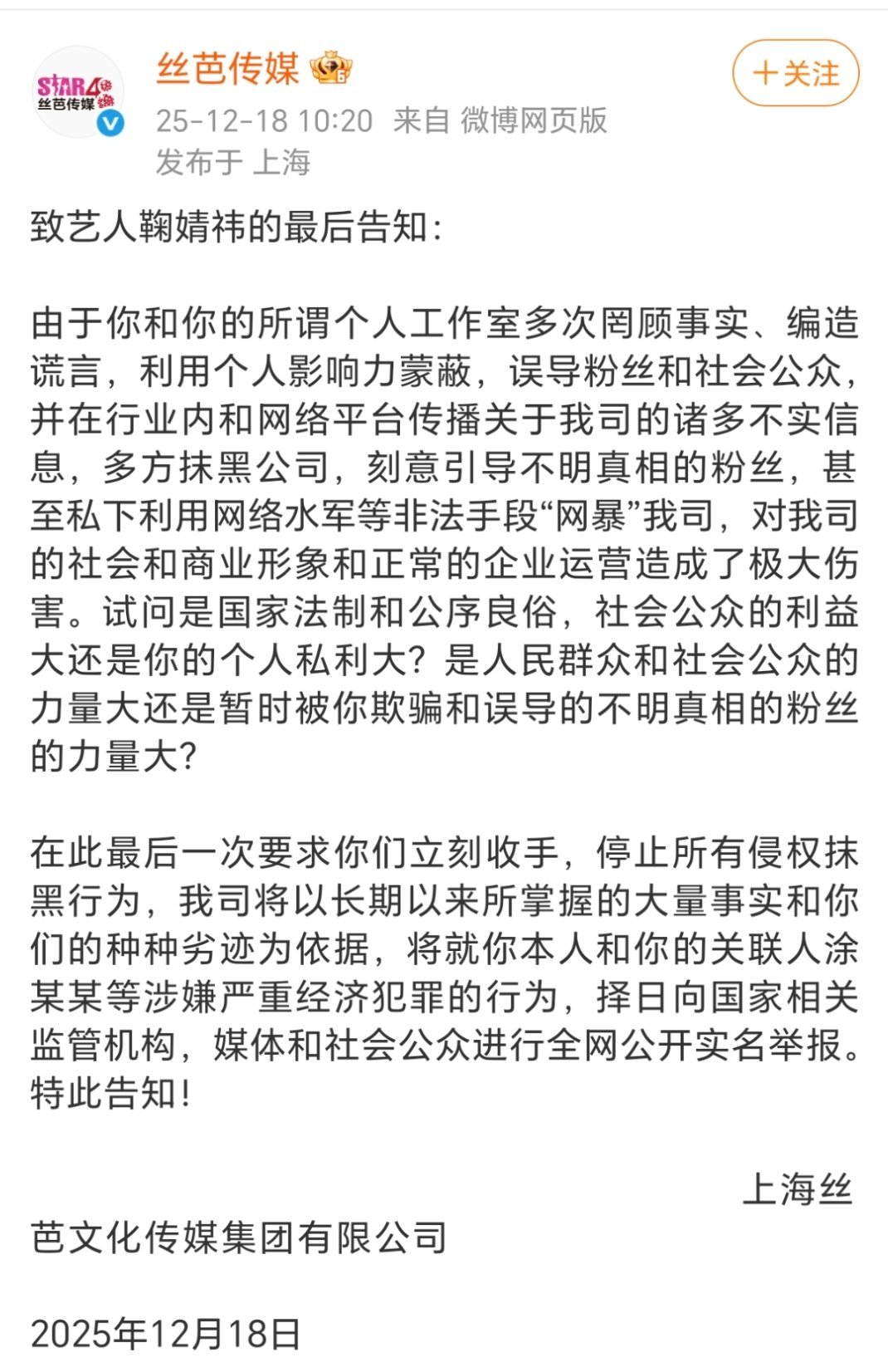 丝芭在恐吓威胁鞠婧祎要鱼死网破😂其实还是💰的问题,钱谈妥了就没事了