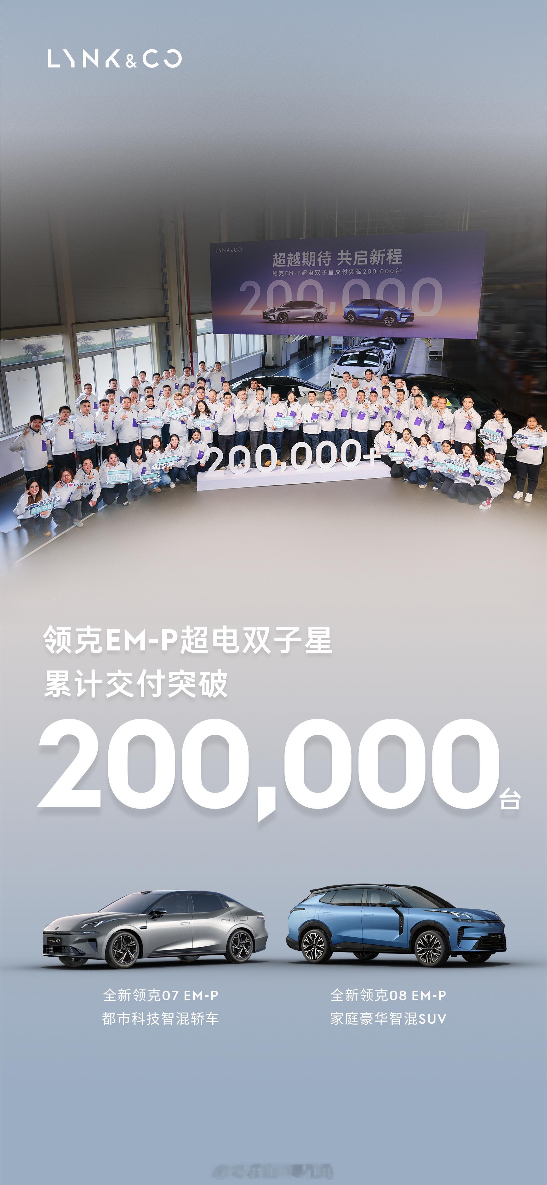 领克超电双子星累计交付超20万台 这是一场从2023年正式拉开序幕,2024年揭开新篇章,2025年达到小高潮的,关于向宽领克 品牌复兴的伟大征程。尽管截至目前领克08和领克07只经历过一次年度改款,但凭借着TND二代设计语言带来的独特前卫外观、EM-P智能电混带来节能更性能的动力表现、CMA2.0平台带来的超纲安全和更宽适空间、魅族Flyme Auto车机系统带来的智能翻身本钱,双子星组合已经取得了相当优秀的销量成绩,感谢各位的支持!我相信辅以后续不断优化迭代的智能化表现和场景体验,双子星组合未来的道路势必更加开阔!领克 杭州·杭州极氪大厦