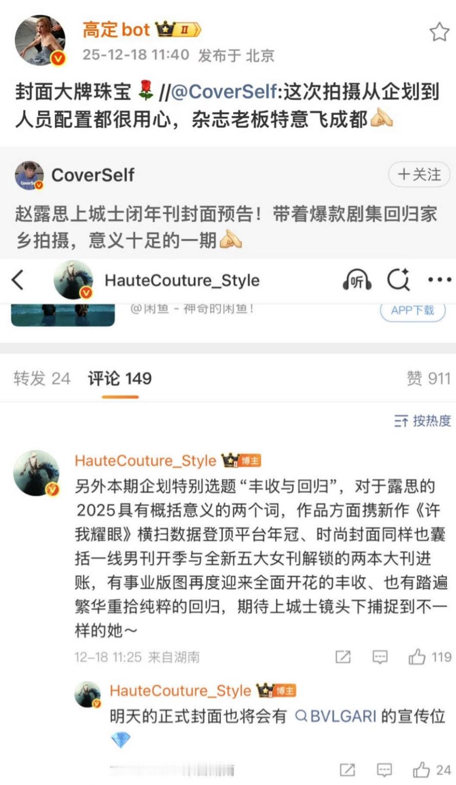 赵露思上城士有宝格丽的宣传位,所以这是不是续约了的意思?许我大爆,现在赵露思在95花里风头无两。不管你之前看不看好她,她确实争气。