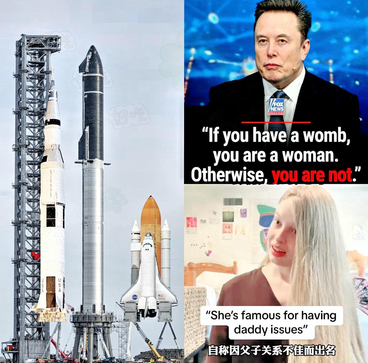 马斯克,地球上最有钱的男人,发了条推特。 他说,有子宫的才是女人,没有的,就不是。 能把火箭送上火星、玩转商业帝国的他,却搞不定亲子间的隔阂。儿子泽维尔变性改名薇薇安,断绝关系还公开批评他,这份无力感,再有钱也化解不了。 他口中的“觉醒思想病毒”,更像无法接受孩子脱离自己掌控的执念,想用生物学定义逼孩子回到熟悉的秩序里。 可亲情从不是代码或商业逻辑,不是靠权势和口号就能扭转的。 那些呼风唤雨的大人物,看似拥有一切,却照样逃不过亲子间的价值观碰撞,照样要面对“爱而不得”的遗憾。 真正的家人相处,从来不是谁说服谁,而是谁先愿意理解谁。你觉得马斯克该放下执念妥协,还是坚持自己的想法?马斯克 世界首富马斯克 特斯拉马斯克 马斯克经济 马斯克名场面
