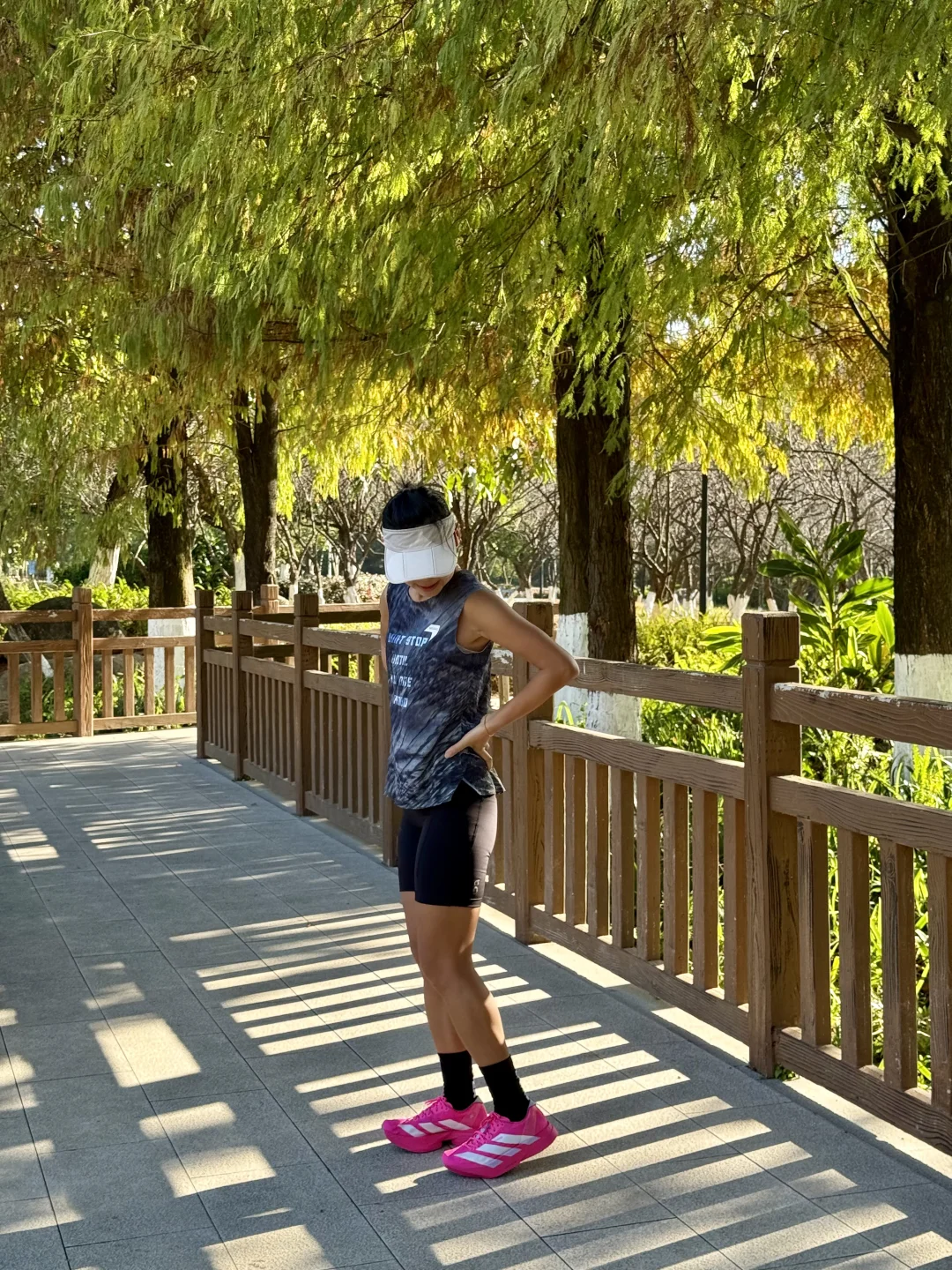 离广州马拉松还有4天~来个小强度节奏热身~ 这次广马比去年要热很多,准备好高温作战吧 这是我的第一双阿迪达斯pro4跑鞋 穿着跑了20公里左右 脚感没有耐克alphafly3推动力强啊~ 可能我步频185左右不够快的原因? 还是pro4偏软回弹不明显? 真是千人千脚呀,暂时还是觉得耐克更适合自己 - 这次广州马拉松大家选择什么战靴呢? -