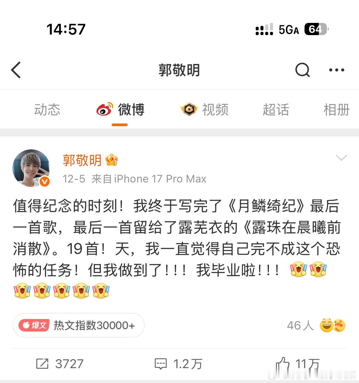郭敬明又又又上线了,时刻关注着丝芭的动向。《月鳞绮纪》1.16到底能不能播啊,郭敬明都担心着呢……