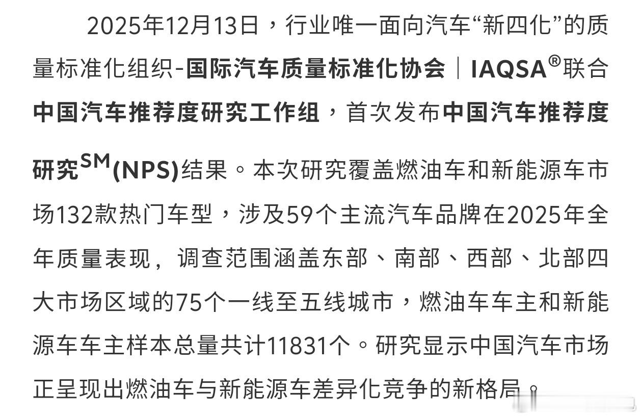 昨天nps发布后我去研究了一下,这IAQSA可就真权威了,而且有些数据也很有趣。燃油车和新能源车是分开评分的,如果直接看均分,燃油车的品牌口碑比新能源分高,但是新能源在品质体验和价值感知都远超燃油车。燃油车的销售分略高 服务分略低。这也意味着产品力新能源车是远比燃油车要高,但燃油车这么多年积累下来的口碑还是不能忽视的。而极氪也在缓了一口气后,产品口碑也是回升不少,009获得中大型纯电动mpv获得产品质量推荐和产品综合口碑双第一,也是实至名归了。但我没想到的是作为沧海遗珠的007居然也获得大型纯电轿车产品综合口碑第一本来我是想在新007出之前做个007的节目的,但是这不是延期了吗,ddl爱好者狂喜,等到时候快上了,我再做个老款的007视频吧,讲讲我的初心。极氪大v聊车 泰国·泰国素万那普国际机场
