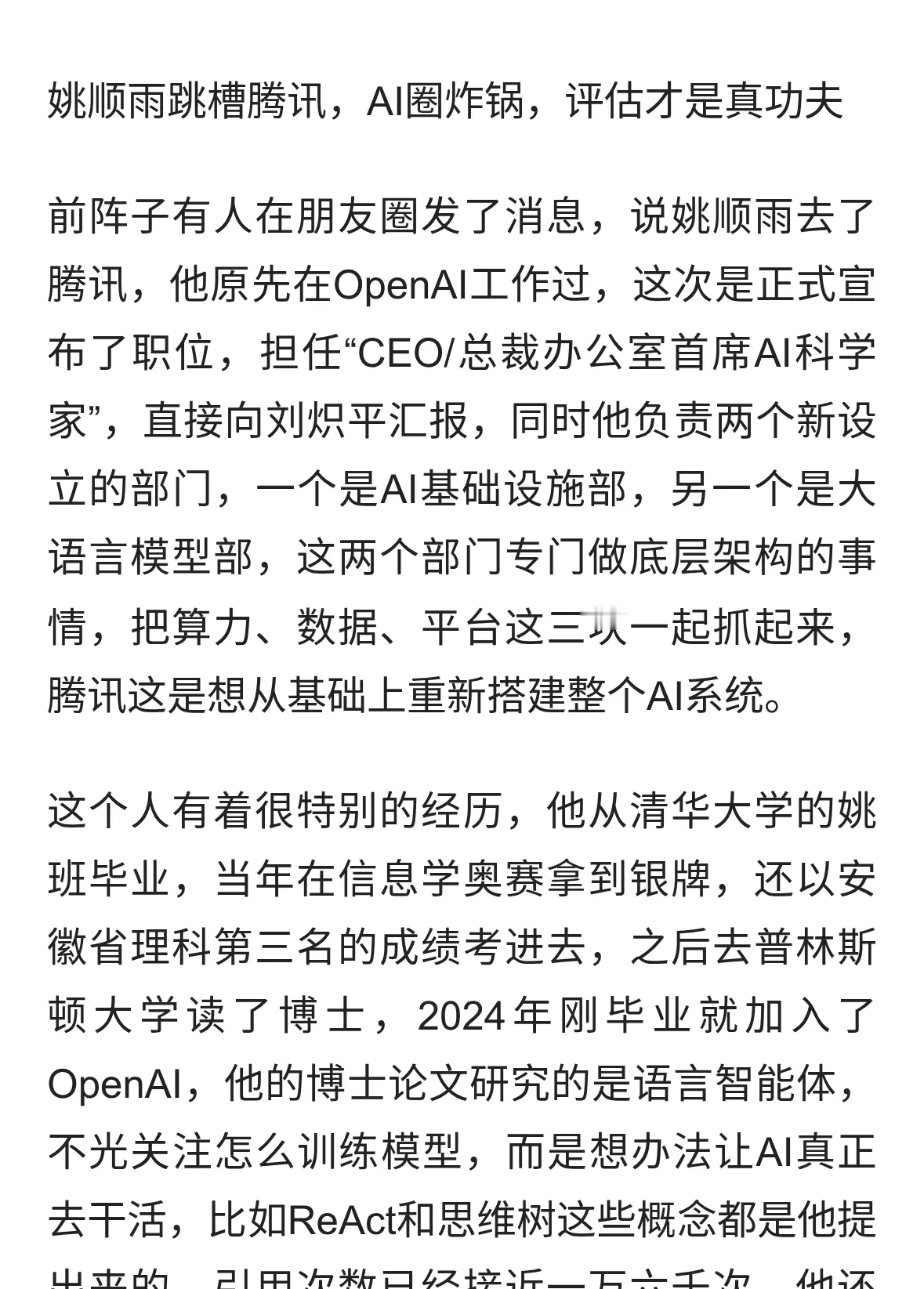 突发!OpenAl大神姚顺雨,任腾讯首席AI科学家