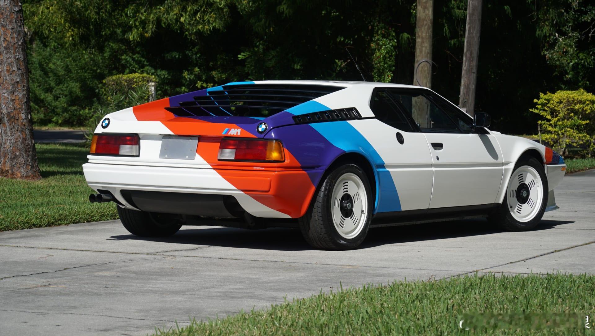 大V聊车 宝马M1是宝马M部门成立后正式推出的首款车型,当然M部门成立之初还有过一款采用了后置发动机布局的宝马Turbo概念车。宝马M1是与意大利Giorgetto Giugiaro设计公司合作的产物,采用了中置发动机布局。宝马M1的车身很轻巧,整备质量1300公斤。外形轮廓有着硬朗的线条和楔形车身,车头有可翻转的大灯,平直的双肾格栅,特别是车身高度仅有1.14米。作为赛事用途的宝马M1共生产了460辆,其中399辆是为了认证而生产的市售版本。市售车型动力配备了M88直列6缸自吸发动机,排量3453毫升,最大功率277马力、最大扭矩330牛米,匹配采埃孚的5挡手动变速箱,最高车速265公里/小时,成为当时最快的德国公路跑车。作为赛事用车的宝马M1 Procar装备了M88/1直列6缸自吸发动机,排量3498毫升,最大功率470马力、最大扭矩390牛米。而更高级别的宝马M1 Gruppe5赛车装备了M88/2直列6缸涡轮增压发动机,排量3191毫升,最大功率来到了1000马力。宝马M1车身首次采用了不对称的三色条纹涂装,也成为了日后宝马M部门的专属Logo,当然这个也是意大利Giorgetto Giugiaro设计公司的创意。