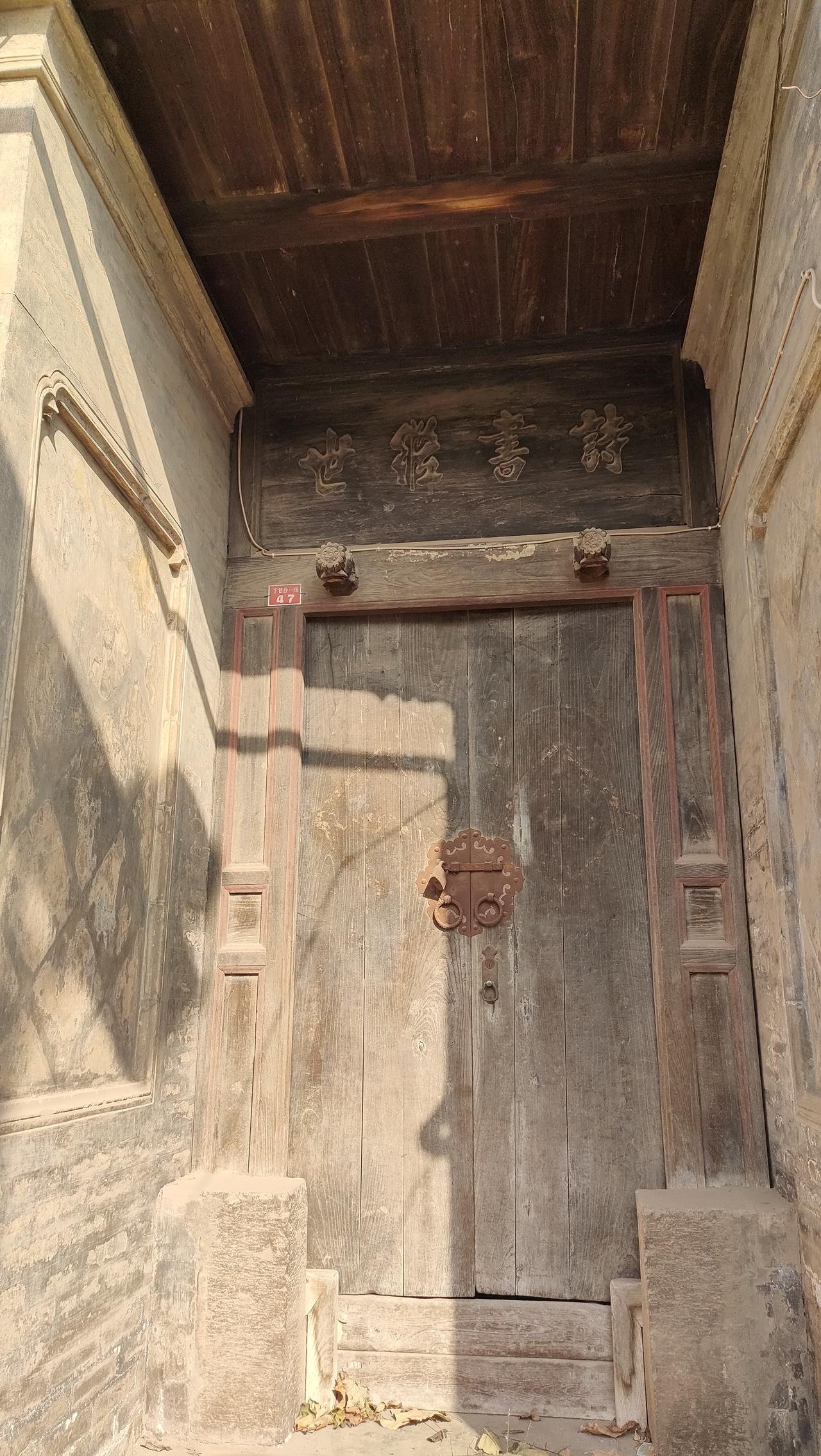 韩城的门楣文化博大精深,无意中在一村巷中发现两个类似门楣,一题诗书第,一题诗书继世。从门楣上可以了解两个家庭的不同底蕴。“诗书第”比较常见,说明家中有人考中功名,不用靠耕田经商来维持生计。"诗书继世”出自苏轼《三槐堂铭》:“忠厚传家久,诗书继世长”,表明此家是世家,几代甚至于十几代人都是书香之家,家族传承长久,即所谓的世家。可惜匆匆而过,有机会一定去考证一下,看自己的理解是否正确。 家庭是文化传承的重要载体,建一处宅第很容易,但是要形成符合主流价值观的家风则需要沉淀和积累,在浮躁的世界中,清醒的家风传承不应该退位。
