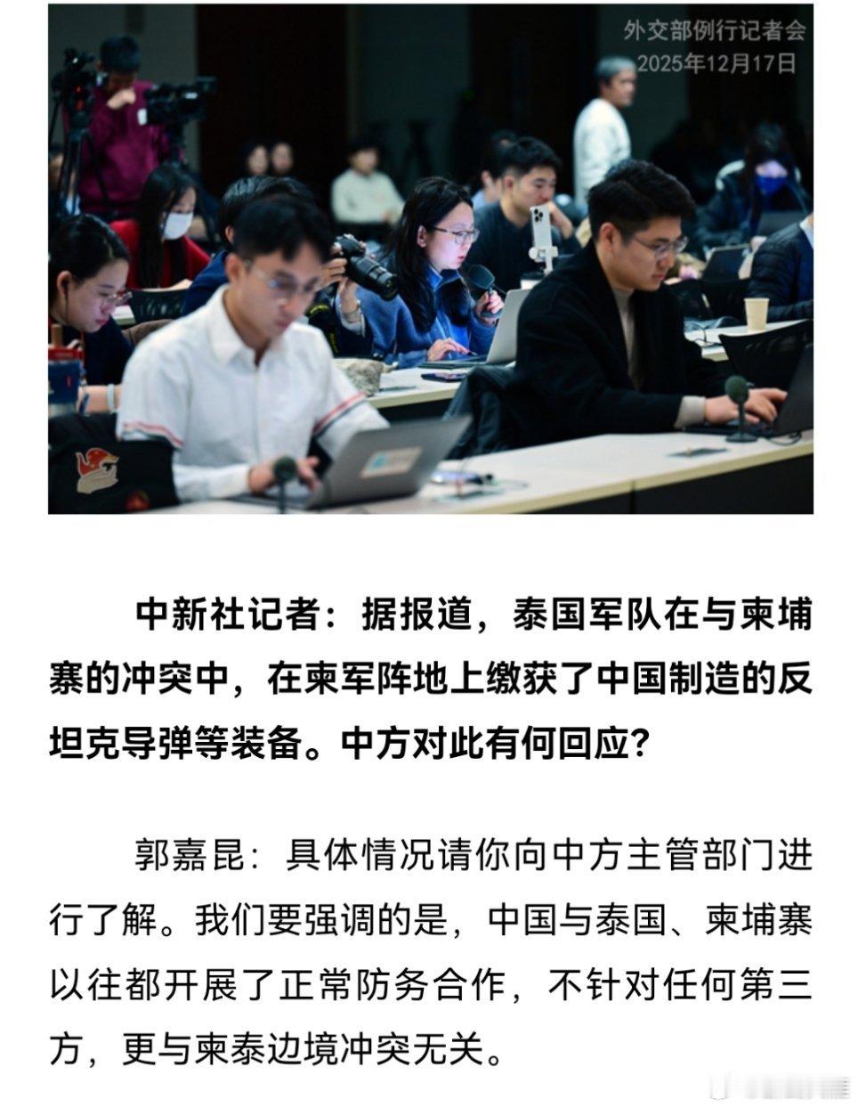 外交部回应泰国缴获中国制造装备
