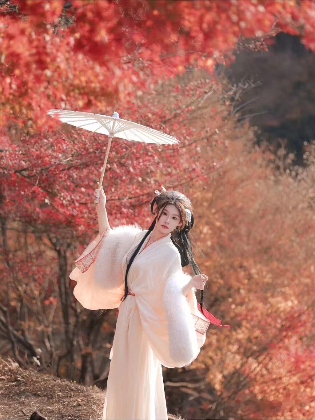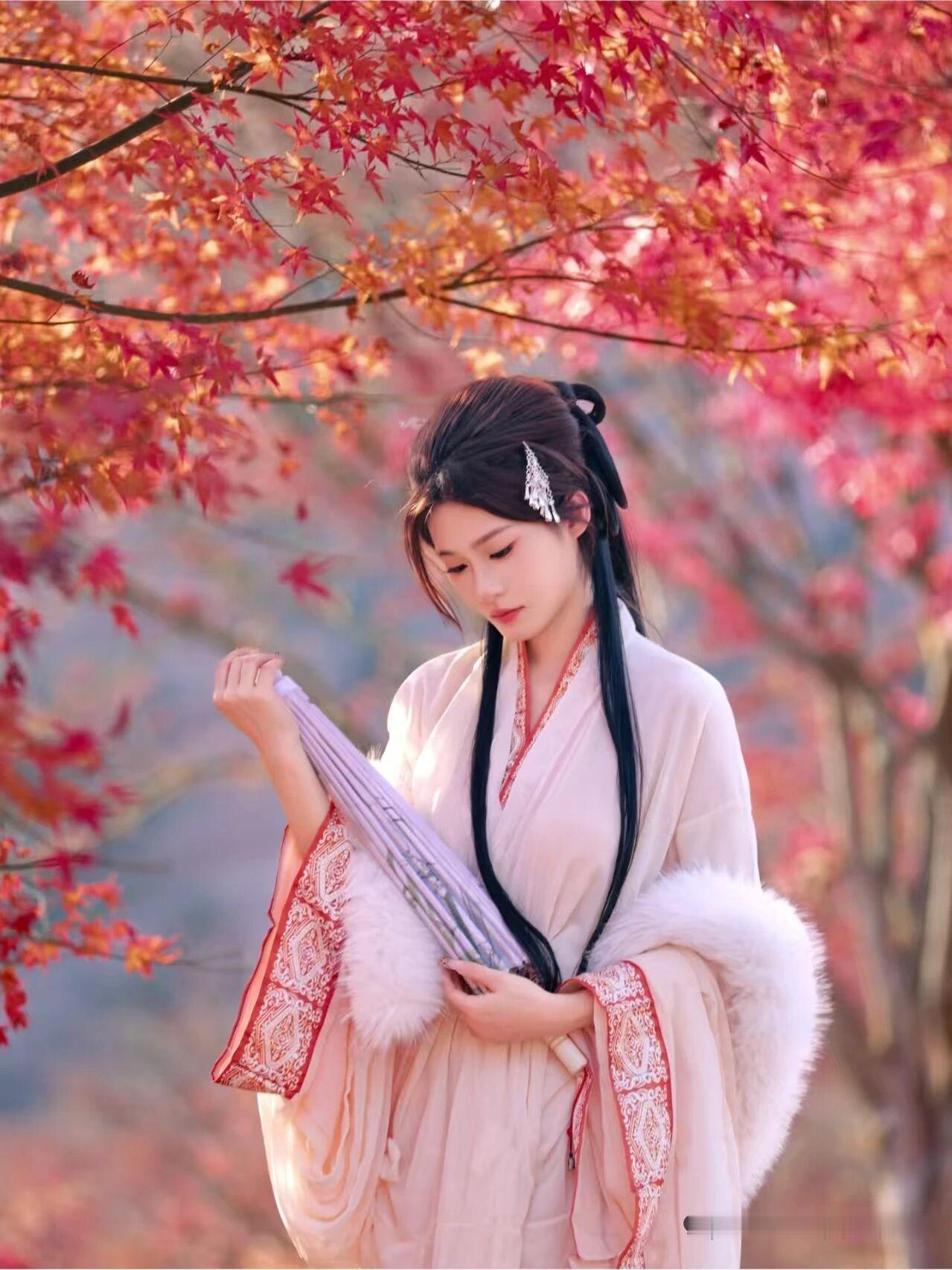 红叶映秋影,琴声入画来。你认为汉服是最美的吗