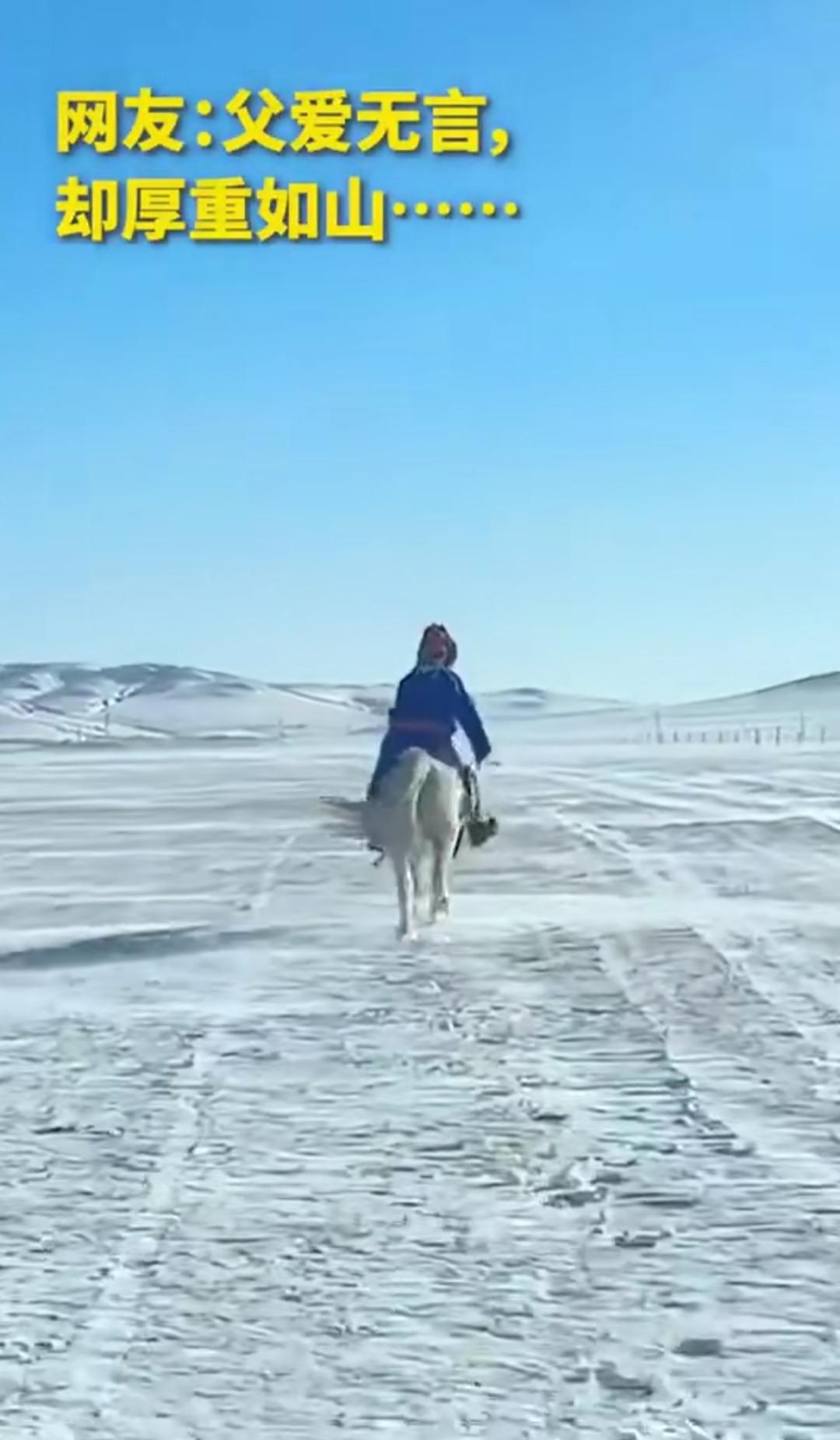 零下几度的路上,大叔前面骑着马,汽车后面跑,谁能想到这是父亲在给女儿引路? 女儿第一次独自开车回老家,怕她记不住山路、担心导航失灵,父亲没说一句“我陪你”,悄悄牵来家里的马,一路引领着汽车。马跑起来的颠簸程度可想而知,大叔却稳稳坐着,眼睛死死盯着前方。 评论区有人说:“父爱从来不是轰轰烈烈,而是藏在细节里的笨拙守护。” 是啊,我们总嫌父亲沉默、不懂表达,却忘了他会在你出发前检查好行李,在你晚归时亮着灯等你,在你迷茫时做你最坚实的后盾。 那些说不出口的关心,那些默默付出的瞬间,才是最动人的牵挂。愿我们都能读懂这份深沉的爱,趁时光还在,多给他们一些陪伴。