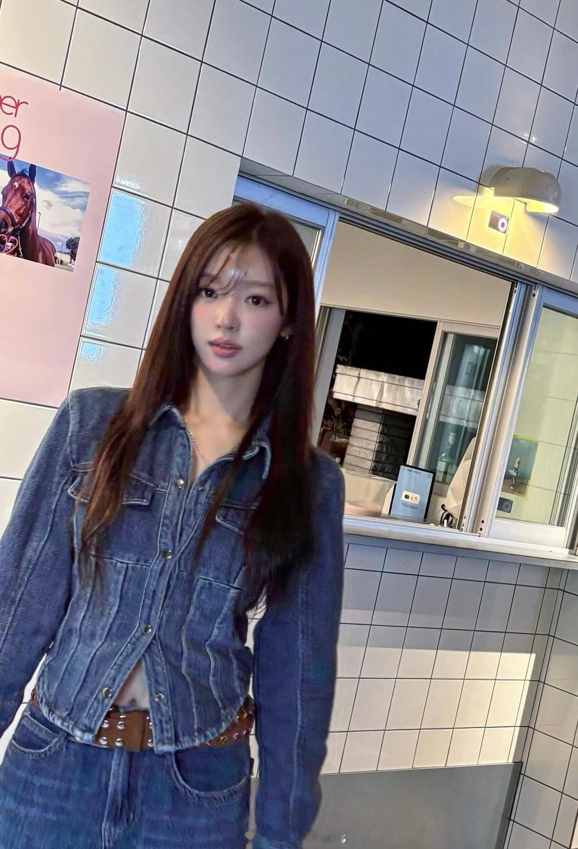 kim a hyun肤姐穿豹纹短外套,内搭小背心还有低腰牛仔裤人太辣🔥啦