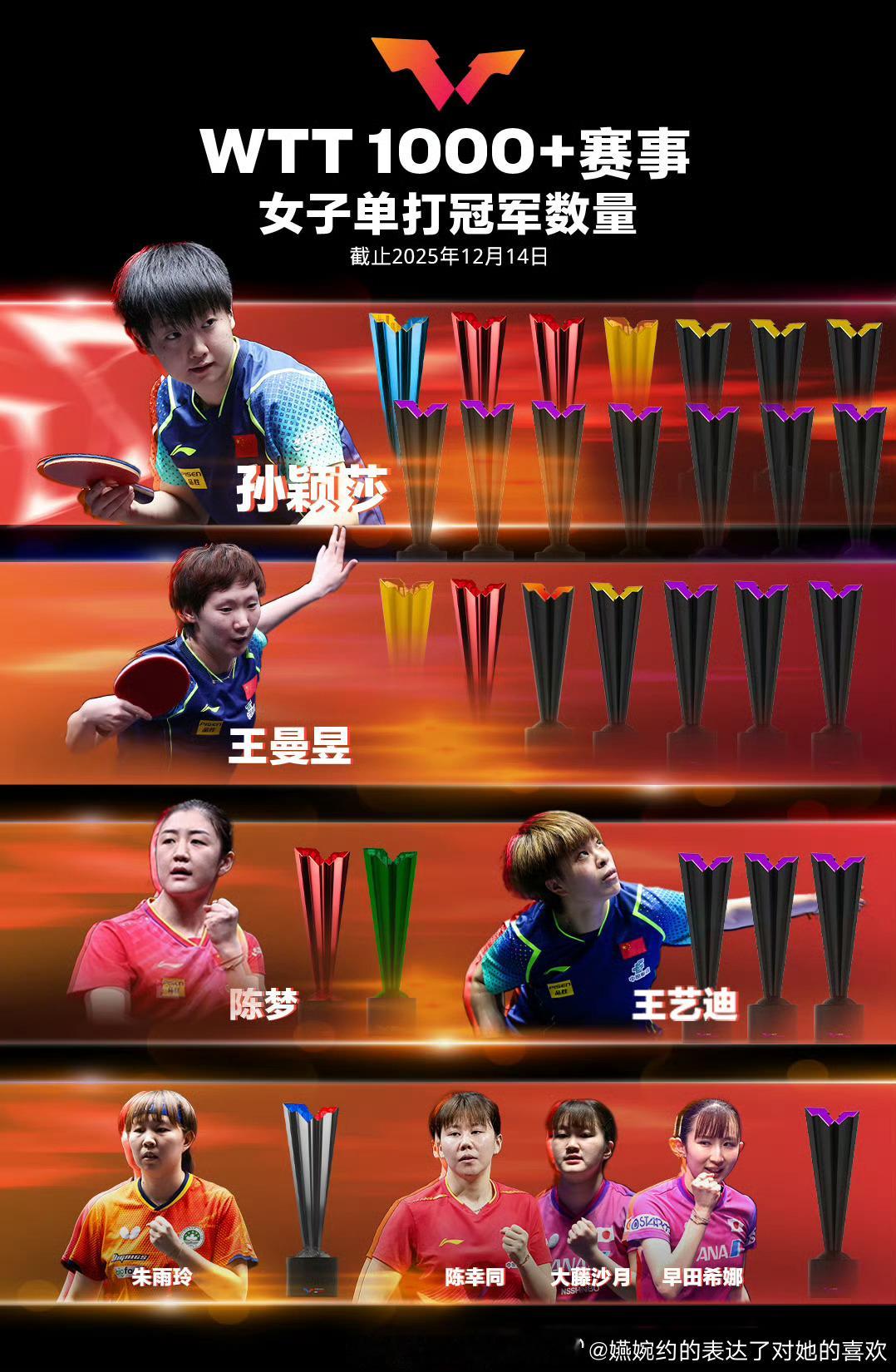 孙颖莎就这样拿的冠军框都放不下了,两整排