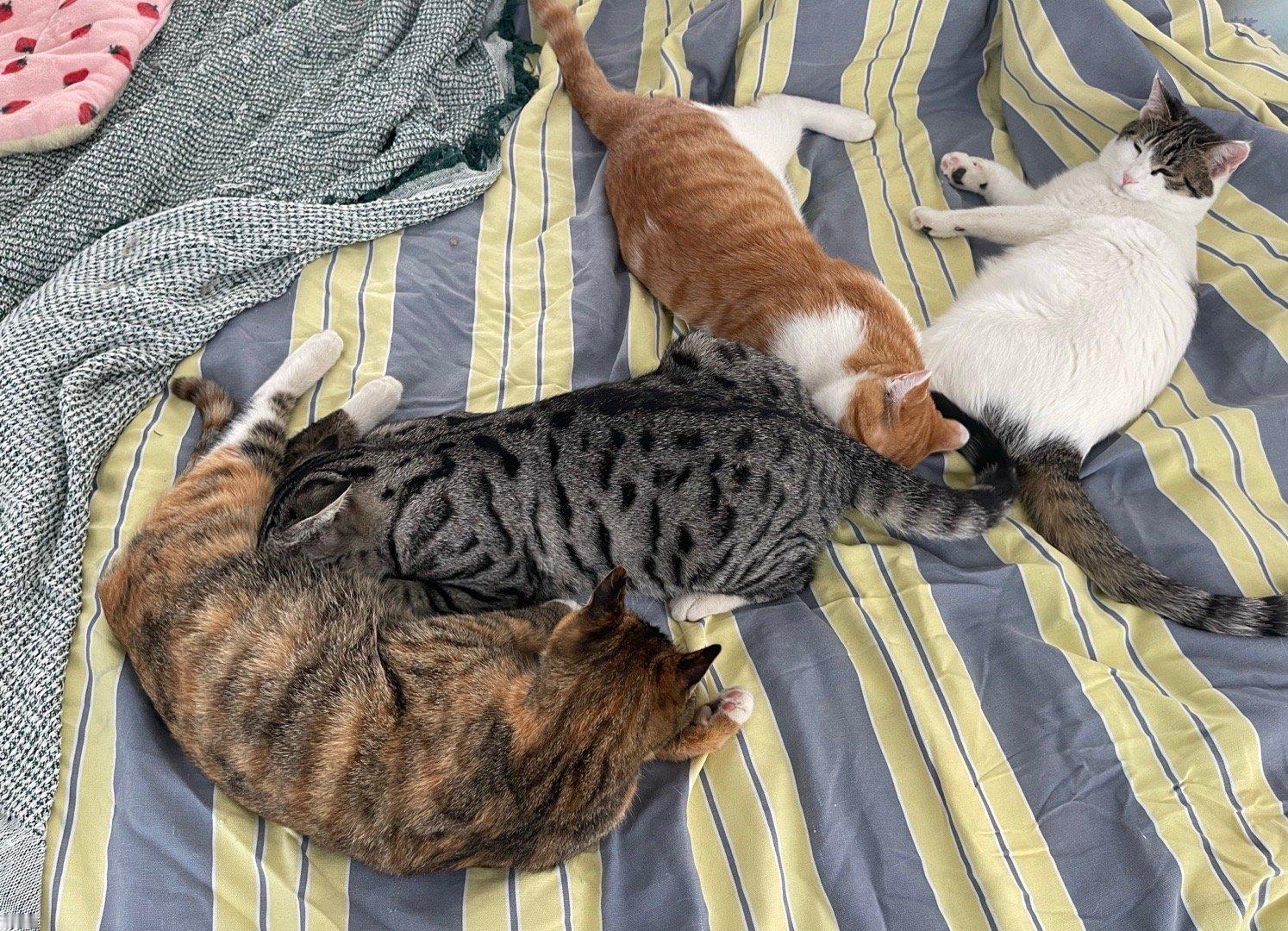 8只猫咪,全部进屋里过夜了。全屋地暖,他们也是享受到了。我这暖气费交得太值了。