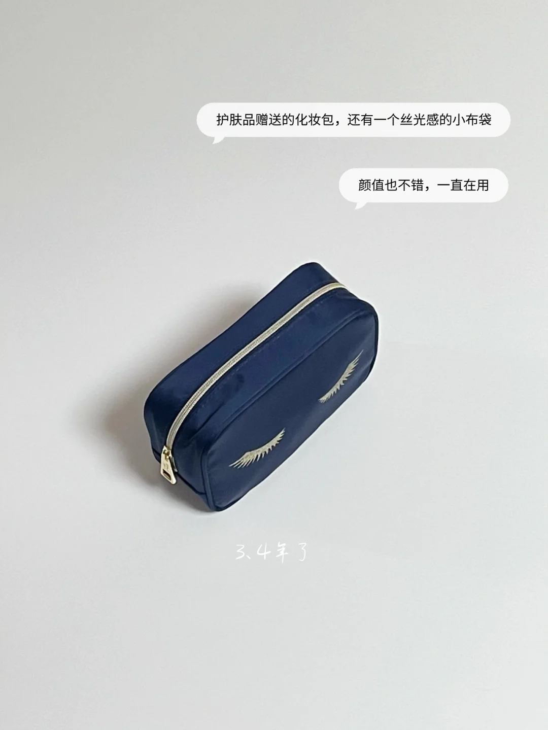 是护肤品的赠品,蓝+金,还蛮有质感的。用于装护肤类小物,大小合适挺能装。