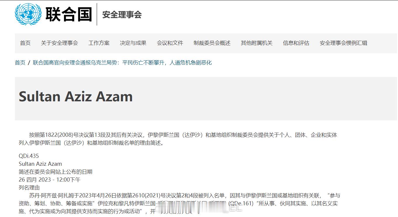 有消息显示,2025年5月16日巴基斯坦安全部门逮捕的一名嫌疑人事实上是极端组织ISKP的发言人苏丹·阿齐兹·阿扎姆,这件事是六月份ISKP的宣传口发生重大变化的原因。这个人在联合国安理会的制裁名单上,安理会方面目前尚未确认这个人的当前状况。