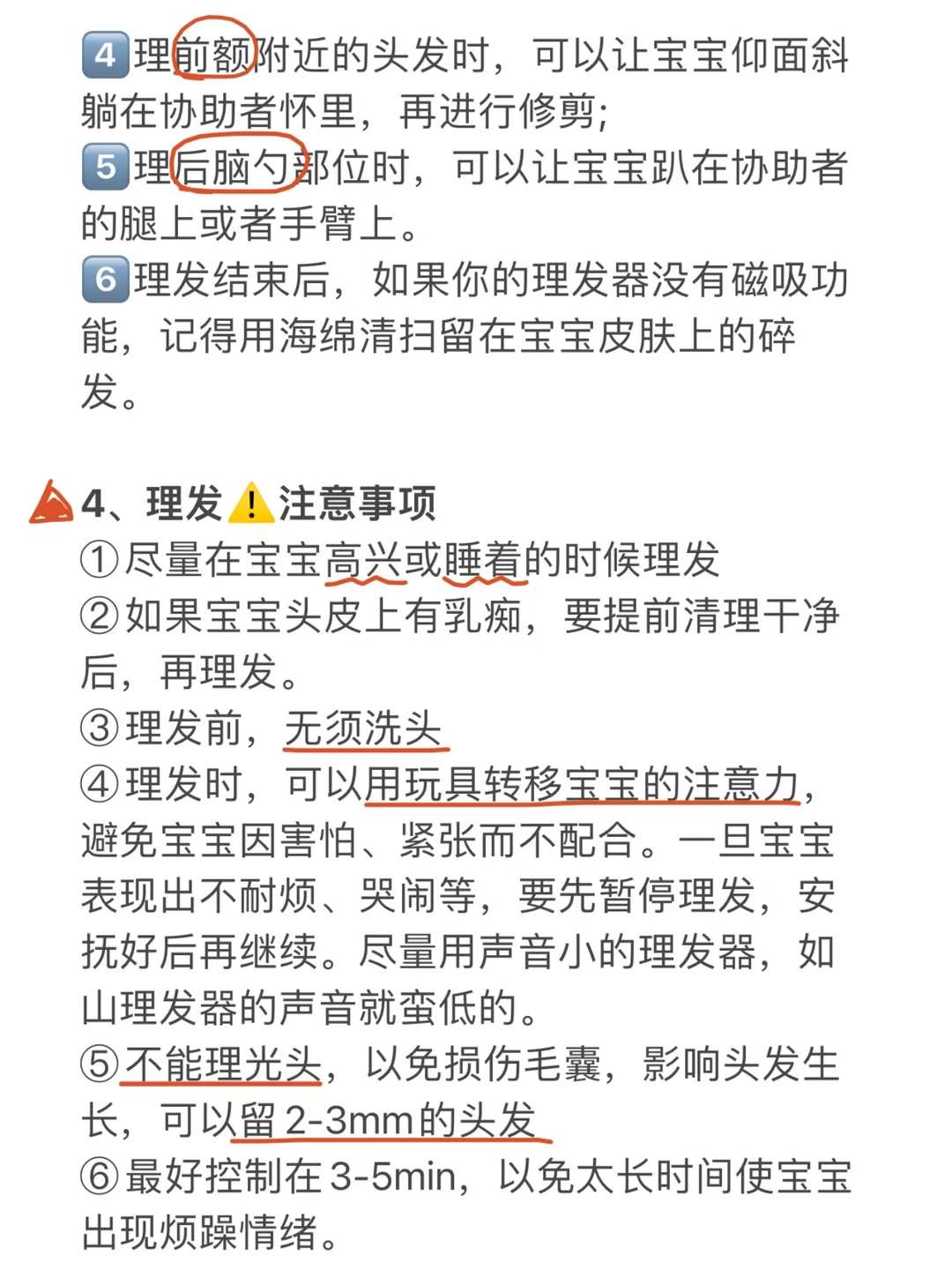 4️⃣理发时,可以用玩具转移宝宝的注意力,避免宝宝因害怕、紧张而不配合。一旦宝宝不耐烦、哭闹等,暂停理发,安抚好后再继续。尽量用声音小的理发器,如山的理发器声音就蛮低的