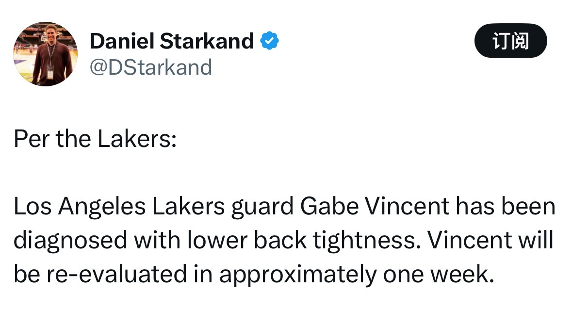诈骗犯!!!文森特被诊断为下背部肌肉紧张。文森特将在大约一周后接受复查。