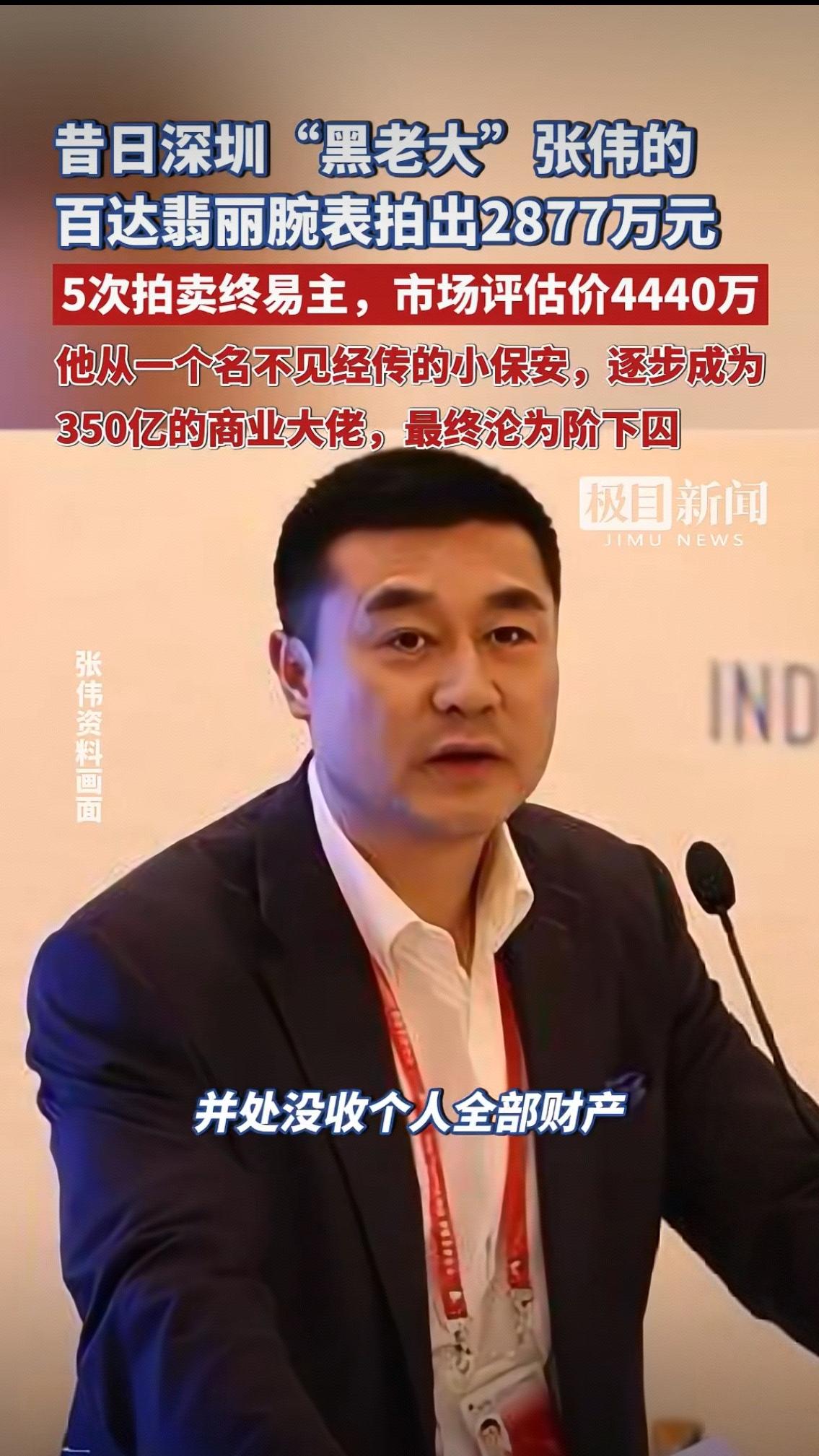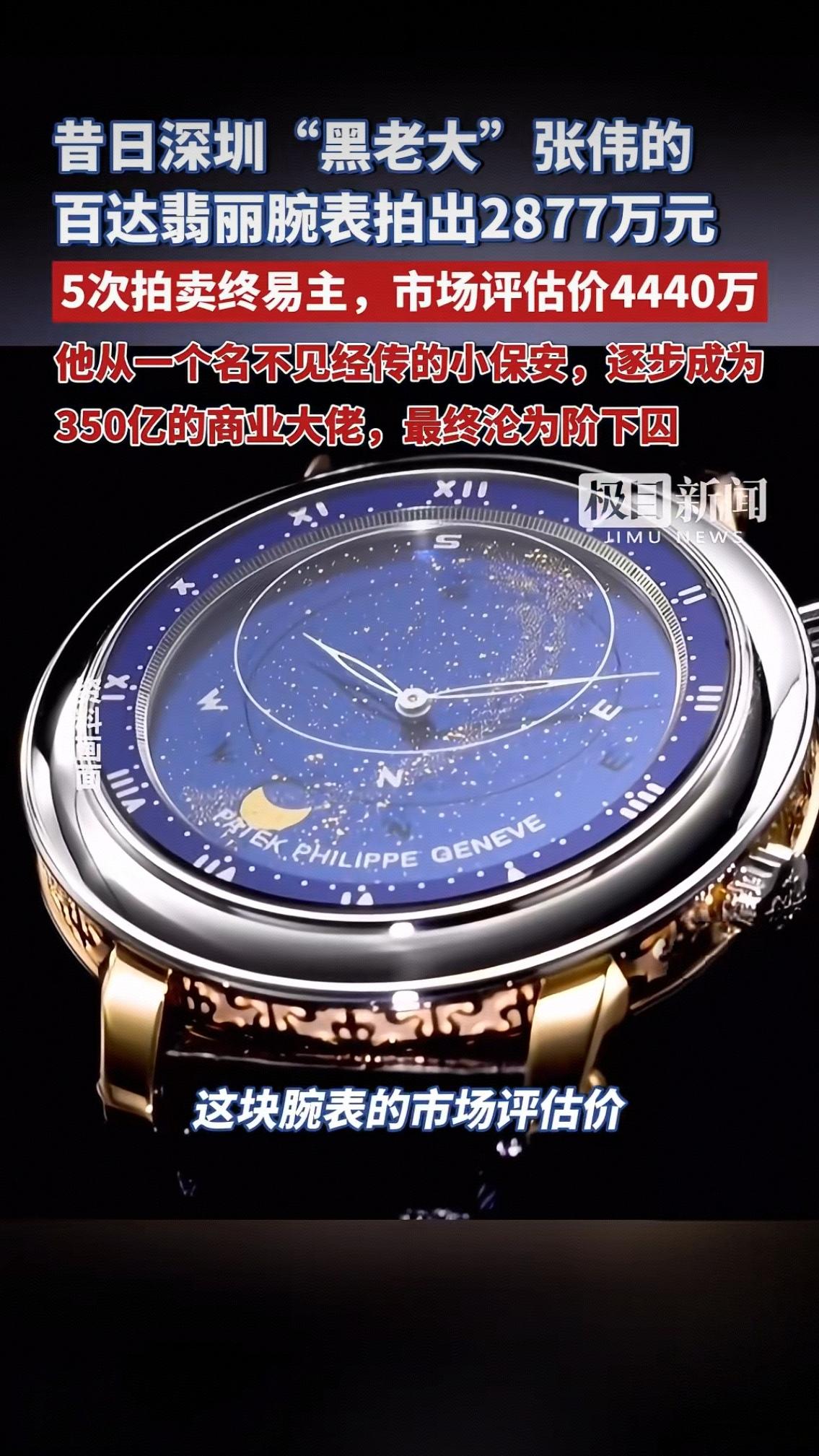 这块在阿里法拍平台上,历经四次流拍、三次降价才终于出手的百达翡丽,就像一面镜子,照出了张伟荒诞又讽刺的一生。 1992年的深圳街头,揣着2000块钱的张伟,怎么也不会想到自己的人生会走到后来的地步。那时候他只是个守在小区门口的保安,看着深圳的高楼一天天往上长,心里的欲望也跟着疯长。他靠着一股子拼劲闯出来,把中科创做到了几百亿的规模,手上戴着的这只百达翡丽,是他用来证明自己“成功”的勋章——全球年产量不足百枚,三问报时、陀飞轮的复杂功能,每一处细节都在说“我站在金字塔尖”。 可这勋章的底色,是洗不干净的脏。他用“88财富网”骗走普通人的养老钱、血汗钱,用非法拘禁、敲诈勒索的手段逼得人走投无路,还把黑手伸到权力场,找了“保护伞”给自己撑腰。那时候他戴着这只表出席各种场合,没人敢说一句不是,所有人都对着他笑,可那些笑容里,不知道藏着多少恐惧和鄙夷。 四次流拍的冷清,像是给这块表,也给张伟的人生补了一记耳光。谁会愿意为沾着罪恶的奢侈品买单?哪怕它是百达翡丽,哪怕它曾估值4440万。直到第五次拍卖,起拍价砍到2877万,才有竞买人出手,没有竞价,没有争抢,就这么安安静静地成交了。 这只表的新主人,买的是顶级腕表的工艺和稀缺性,而不是它背后的“黑老大”光环。张伟曾经攥在手里的财富、权势,到最后连一块表都留不住,那些靠违法犯罪堆起来的浮华,就像泡沫一样,风一吹就碎了。 你有没有过看着新闻,突然觉得“善恶到头终有报”的时候?