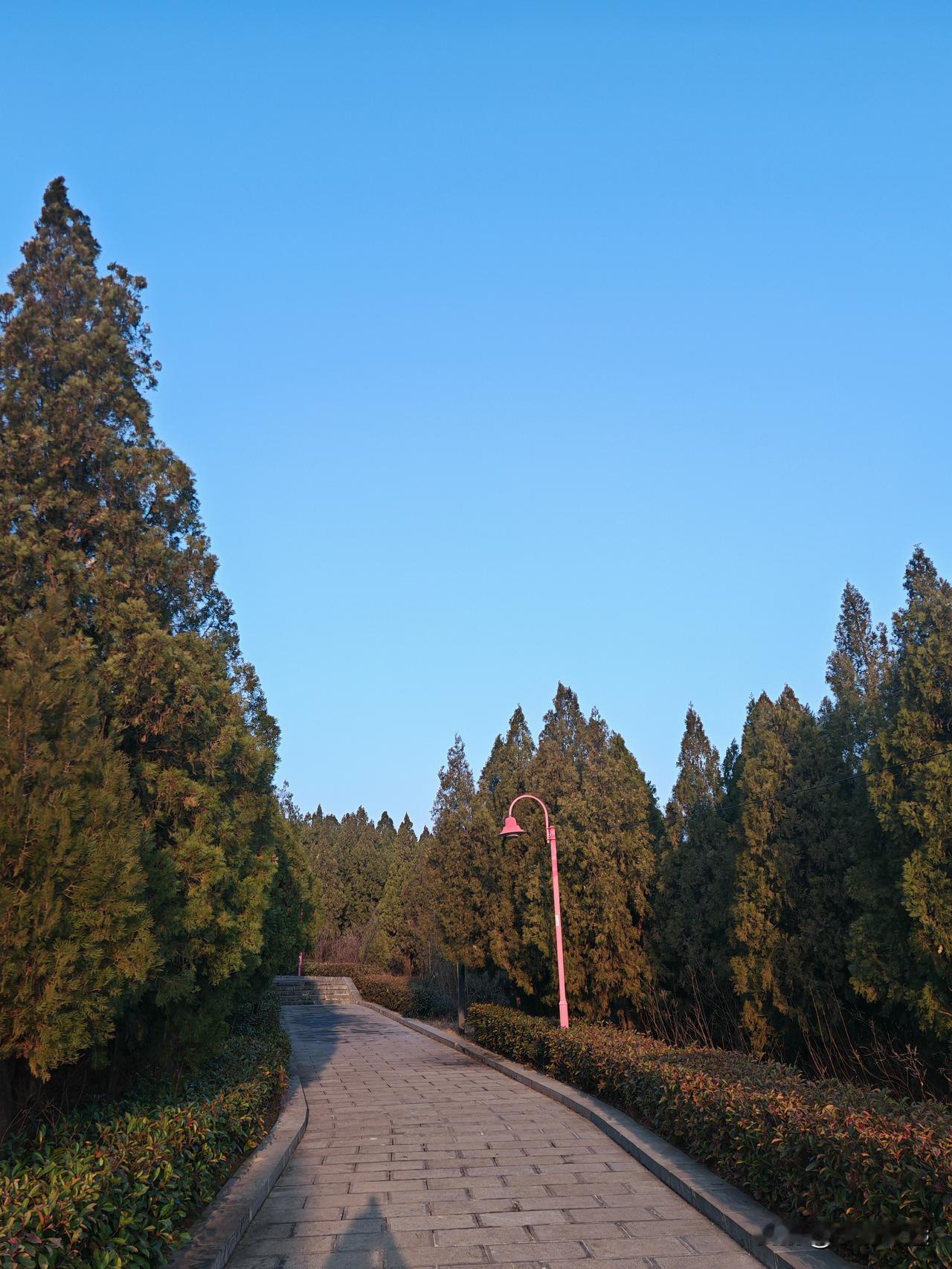 清晨的山峰,是被天光一点点揉醒的。 脚下的石板路还凝着薄霜,踩上去咯吱轻响,像是山的呢喃。道旁的松柏笔直地立着,深绿的枝叶沾着细碎的晨露,风掠过的时候,露水簌簌落下,砸在路边的灌木丛上,惊起几声不知名雀鸟的轻鸣。 粉红灯杆在苍翠的林子里格外显眼,它孤零零站着,像是特意为晨行的人留的一点温柔。抬头望,天是洗过般的湛蓝色,没有一丝云,阳光斜斜地洒下来,把石板路的一半烘得暖烘烘,另一半还浸在树影的微凉里。 山路慢慢往高处延伸,远处的山尖已经被朝阳镀上金边,空气清冽得像是掺了薄荷,吸一口,连胸腔里都透着爽利。这一刻的山,没有白日的喧嚣,只有晨雾散去后,最纯粹的鲜活与安宁。