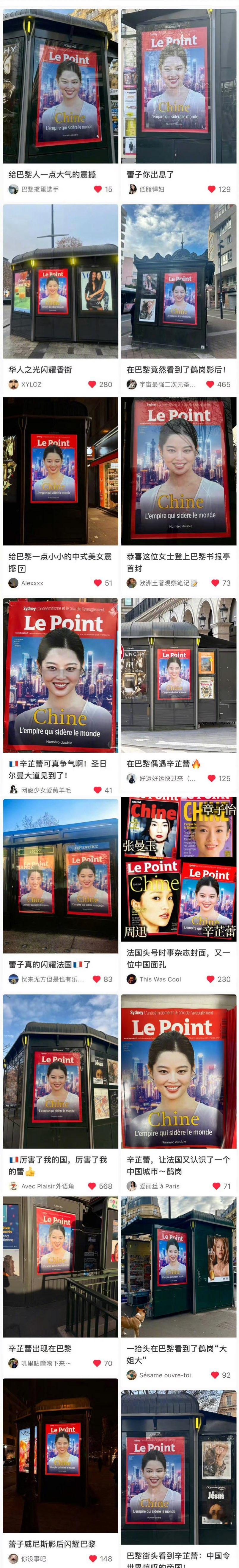 辛芷蕾登法国新闻周刊《Le Point》封面,这本是法国著名的新闻时事周刊杂志,也是法国三大主要新闻周刊之一,这本杂志也在巴黎街头全线投放。