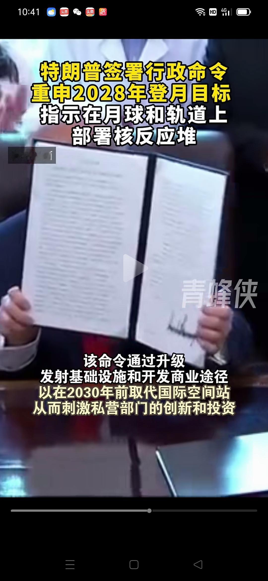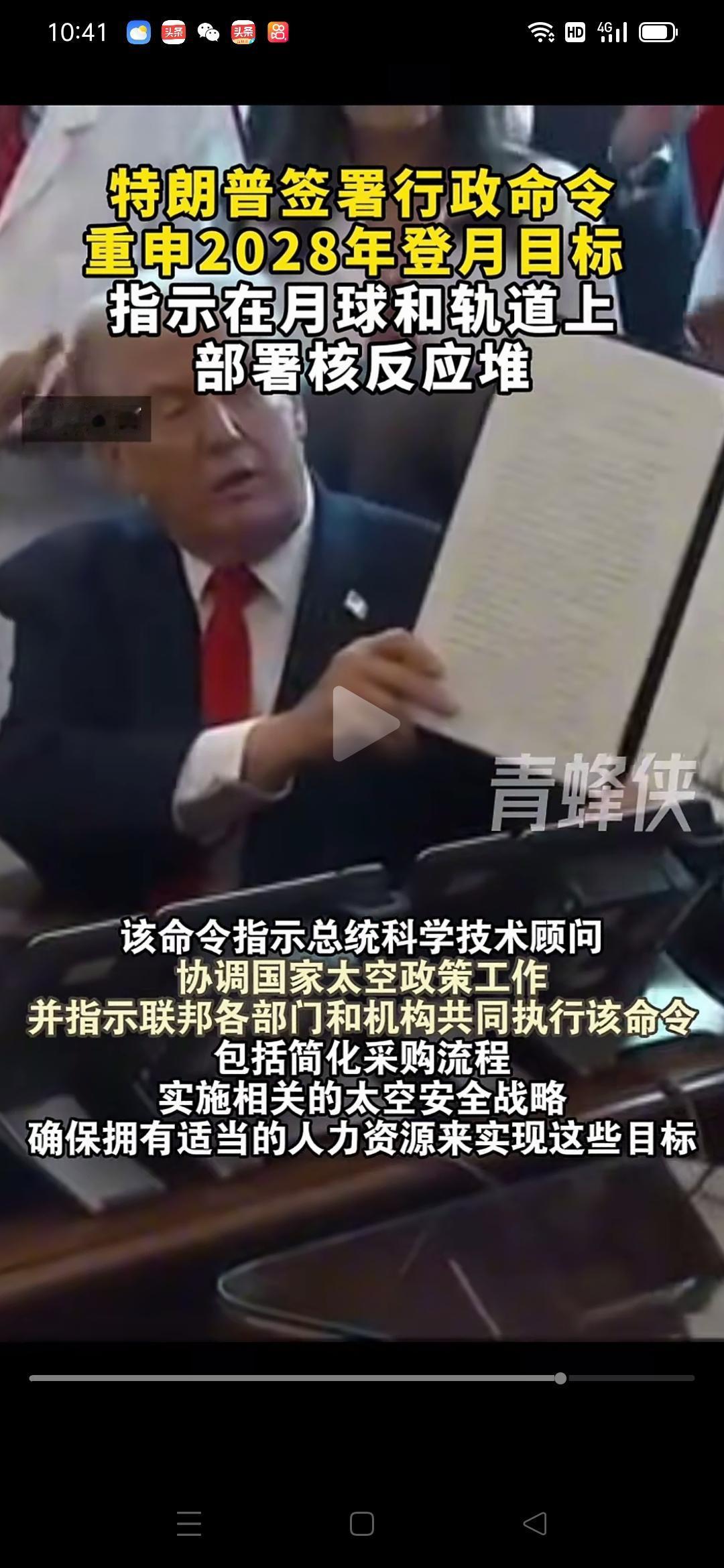 特朗普要和中国搞太空军备竞赛吗?晚了! 刚刚,特朗普决定,“2028年重返月球、2030年前部署月球/轨道核反应堆并建永久前哨站”。特朗普签署这份命令,是在说美国不仅要在地球上实现“美国优先”,还要实现“太空优先”。 特朗普让中国给逼的快疯了!面对中国的“天宫”、中国的“星链”——千帆星座、中国的嫦娥、······中国天天的突破,美国是羡慕嫉妒加恐惧,美国是想在太空超近道打败中国。 理想很丰满,现实很骨感。中国已经不是当年的“追赶派”,而是“领跑者”。美国向太空进发,中国也不可能止步不前。中国不和你玩竞赛,按照自己的脚步实现自己的梦想! 特朗普加沙计划 特朗普芯片战略 特朗普诺奖 特朗普签署的行政令有哪些特点 美国以前可以载人登月,现在能吗?