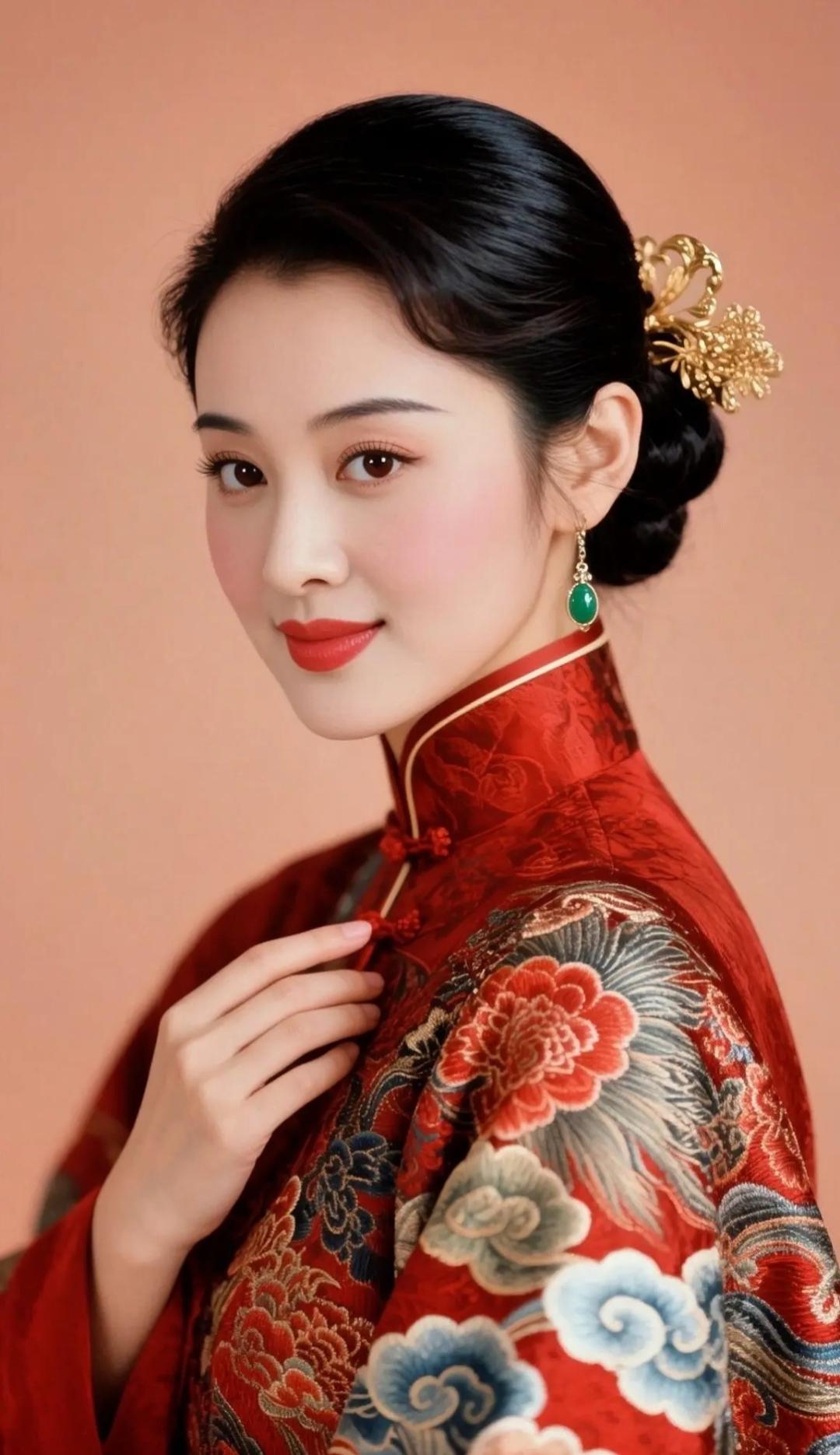 优雅红衣新娘,珍珠项链闪耀,幸福时刻定格。高雅气质美女 优雅美图分享