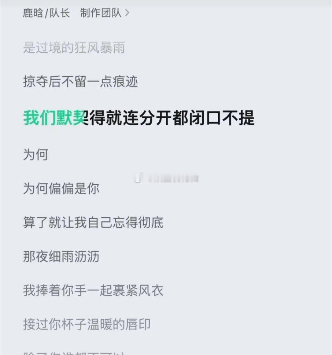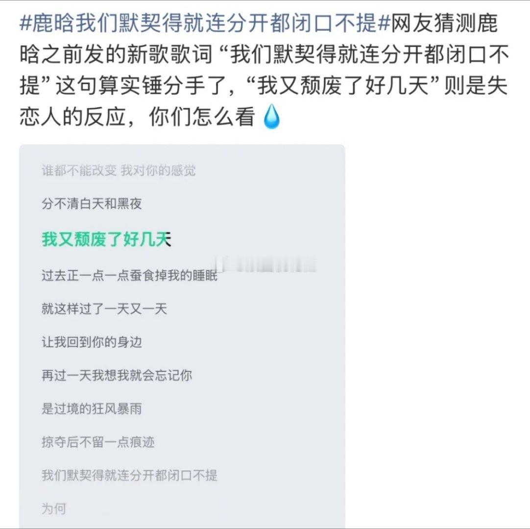 有人说鹿晗把关晓彤写进了歌里!!“我们默契得就连分开都闭口不提”“除了你谁都不可以,我不想把你遗忘,当再见,我还是会热泪盈眶,因为你的模样!”不管结果如何,对于他们来说也是一段刻骨铭心的爱情!!