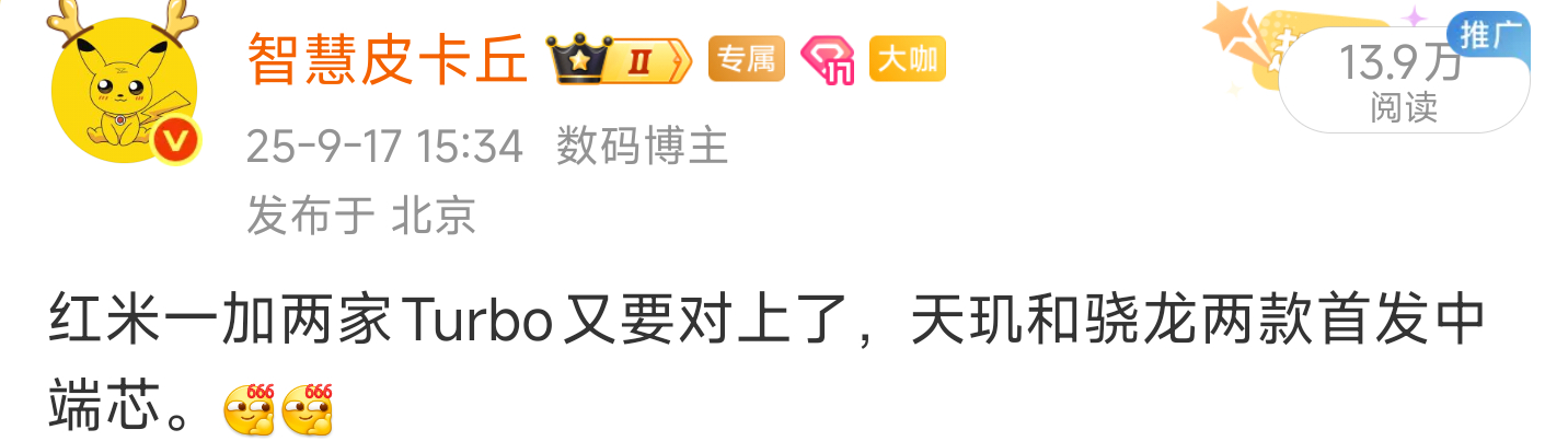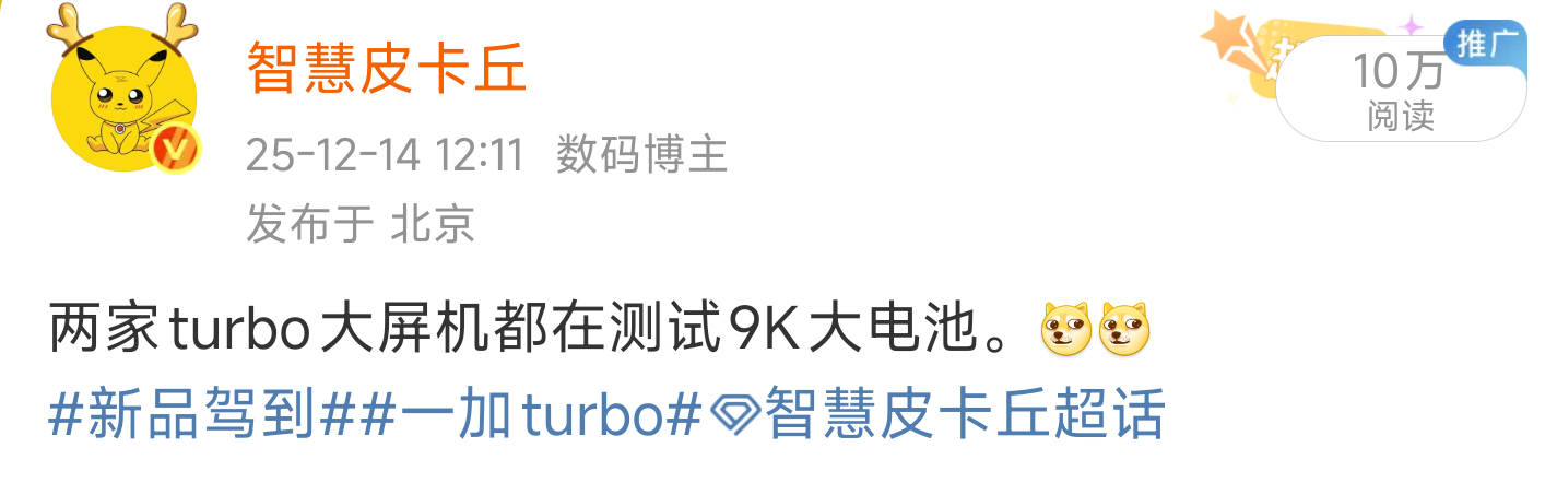 一加Turbo系列开始预热,和大家说过的9K大电池下个月见。一加Ace6T和高通联合定制了骁龙8Gen5,可以期待一下这次一加CPU联调的性能Turbo。新品驾到一加Turbo系列智慧皮卡丘