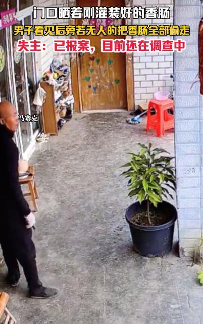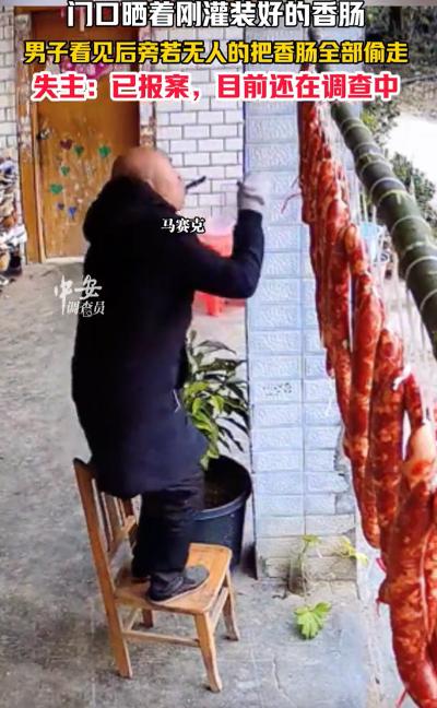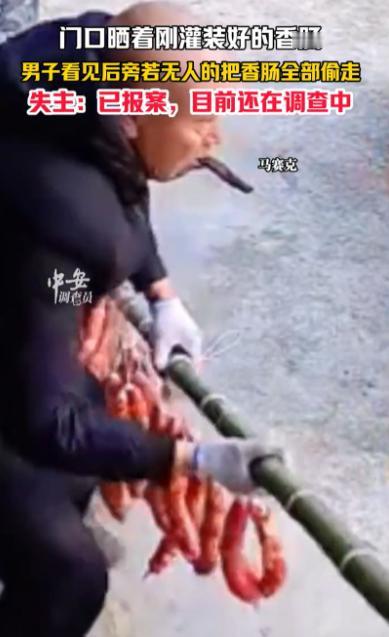 必须严惩!四川成都,一女子将新灌好的香肠放在家门口晾晒,万万没想到,还不到24小时,香肠一根不剩全被人偷走了,查询监控后,女子也是被气的够呛,一名陌生男子竟然直接把晾晒杆给卸下来,叼着烟旁若无人的把香肠拿走了 年末岁尾,本是家家户户筹备年货的温馨时刻,“腊味盗窃”却在多地集中上演,成为不容忽视的治安隐患。 西安老巷内,几户居民集中晾晒的腊鱼腊肉一夜被盗大半,涉案金额超两千余元,已进入刑事侦查阶段。 而近期成都曝光的一起香肠被盗案,更是因小偷的嚣张行径引发广泛关注。 案件发生在成都某居民小区,当事人是一位女士,她花近五百元用新鲜后腿肉灌制了三十多斤香肠,涵盖麻辣、广味两种口味,本是为过年准备的年货。 按照小区惯例,她将灌好的香肠挂在家门口晾晒杆上通风,没想到不到一天时间,整杆香肠就被人偷得一干二净。 监控画面完整还原了这起盗窃的全过程,让不少人看完直呼“嚣张”。 作案人员是一名约五十岁的陌生男子,身着深色外套,全程叼着一根烟,神态十分从容。 他并非临时起意,而是提前踩点——骑着旧自行车在小区门口徘徊五分钟,确认周边无人注意后,才径直走向晾晒杆。 随后搬来凳子站定,熟练地将整根晾晒杆卸下,扛在肩上后慢悠悠走出小区,往巷子深处离去。 整个过程不到三分钟,期间口袋掉出半根香肠,他还随手捡起塞进嘴里,毫无慌张之感。 更让当事人气愤的是,经询问小区门卫得知,这已是近期该小区第三起腊味被盗案。 小偷精准拿捏了作案时间,专挑上午十点到下午两点的“空窗期”动手,这个时段居民多出门办事或在家午休,警惕性最低,再加上小区部分楼道拐角存在监控盲区,年末外来人员进出频繁,给了不法分子可乘之机。 目前,当事人已报警,警方正全力排查嫌疑人轨迹。 这些看似金额不大的腊味盗窃案,带来的不仅是居民的财产损失,更在悄悄侵蚀社区原本的信任氛围。 在不少老旧小区和熟人社区,“门口晒年货”曾是充满烟火气的场景,依靠的是“邻里守望”的朴素信任。 但成都这起案件发生后,该小区不少居民因担心自家年货失窃,纷纷将晾晒的腊味提前收回,从“放心晾晒”到“提心吊胆”,正是信任流失的真实写照。 值得注意的是,不少人存在“小盗窃不算事”的误区,认为“不就是点香肠,值不了多少钱”,但从法律层面来说,这种认知完全错误。 多数网友怒斥小偷行径:“太嚣张了,偷东西还叼着烟慢悠悠,一看就是惯犯,必须严惩!”“腊味是家家户户用心准备的年货,藏着年味和心意,偷这个太缺德了。” 也有网友关注社区安防漏洞:“小区接连被盗三起,监控盲区、外来人员管控不严是关键,物业得赶紧补短板。” 对于“小盗窃不算事”的说法,网友普遍反驳,有懂法网友科普:“盗窃不分金额大小,都是违法行为,纵容只会让小偷更猖獗。” 还有网友提醒大家:“年末是盗窃高发期,晒年货尽量选监控覆盖区域,提高警惕没毛病。” 懂法人士明确指出,盗窃行为的界定与涉案金额无必然关联,《治安管理处罚法》第四十九条规定,盗窃公私财物可处五日以上十日以下拘留,并处五百元以下罚款。 情节较重的,拘留期限和罚款金额还会相应提高。 具体到成都地区,盗窃罪的立案标准为一千六百元,若被盗腊味价值达到这一标准,嫌疑人将构成盗窃罪,面临刑事处罚。 此前重庆、成都的相关案例已经证明,即便盗窃的是几斤腊味,违法者终将付出代价,这也给心存侥幸的不法分子敲响了警钟。 面对年末腊味盗窃高发的态势,居民也需提高自我防护意识。 同时,法律的震慑作用不可忽视,唯有正视每一起小额盗窃案件,才能让心存侥幸的不法分子望而却步,守住年末的社区安全,让“放心晒年货”的烟火气重新回归。 那么到最后,你们是怎么看的呢? 如果各位看官老爷们已经选择阅读了此文,麻烦您点一下关注,既方便您进行讨论和分享,又能带来不一样的参与感,感谢各位看官老爷们的支持!