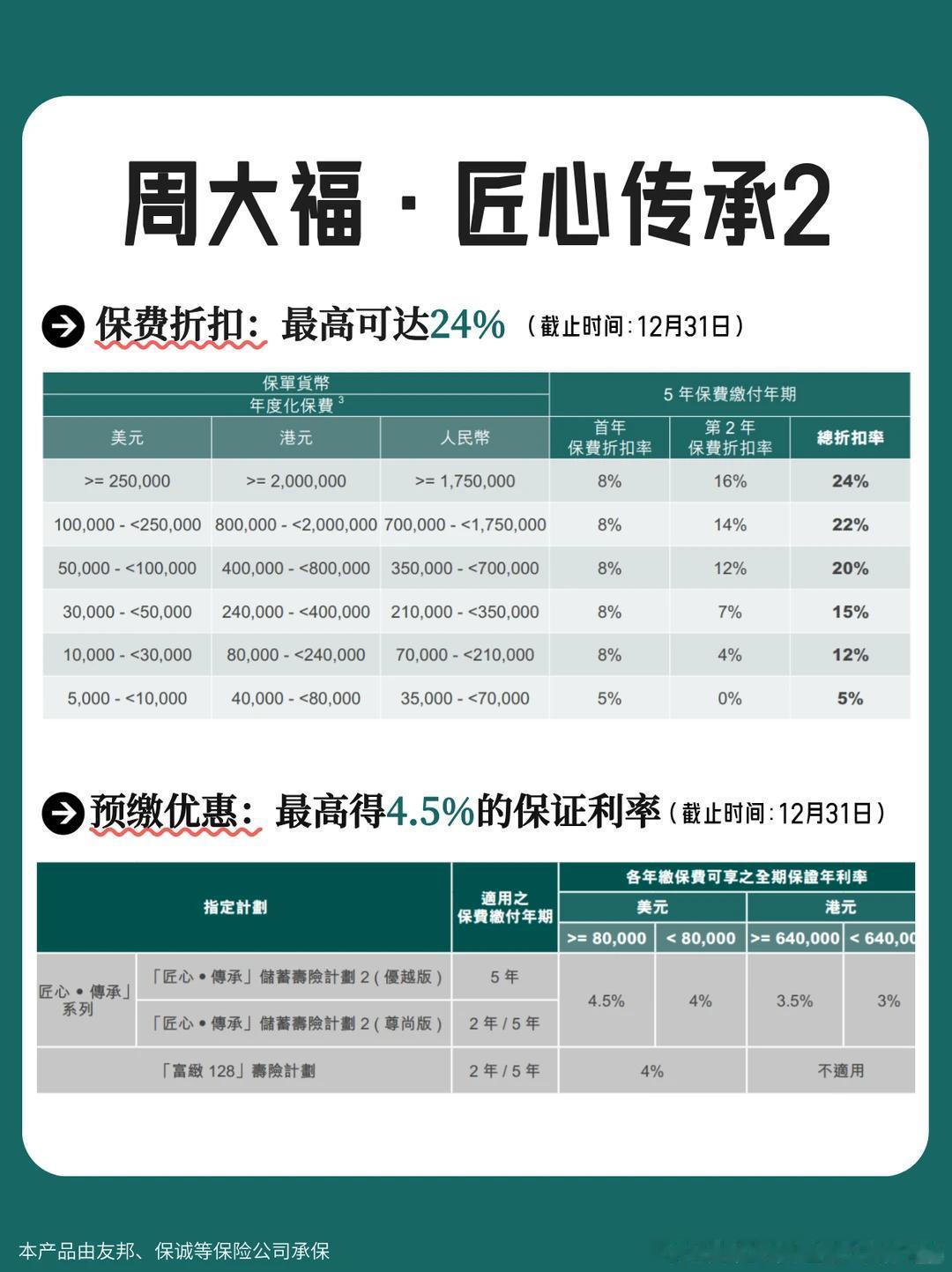 富通 - 匠心传承储蓄计划的缴费年限和总保费 每年交付 10 万美元,连续交付
