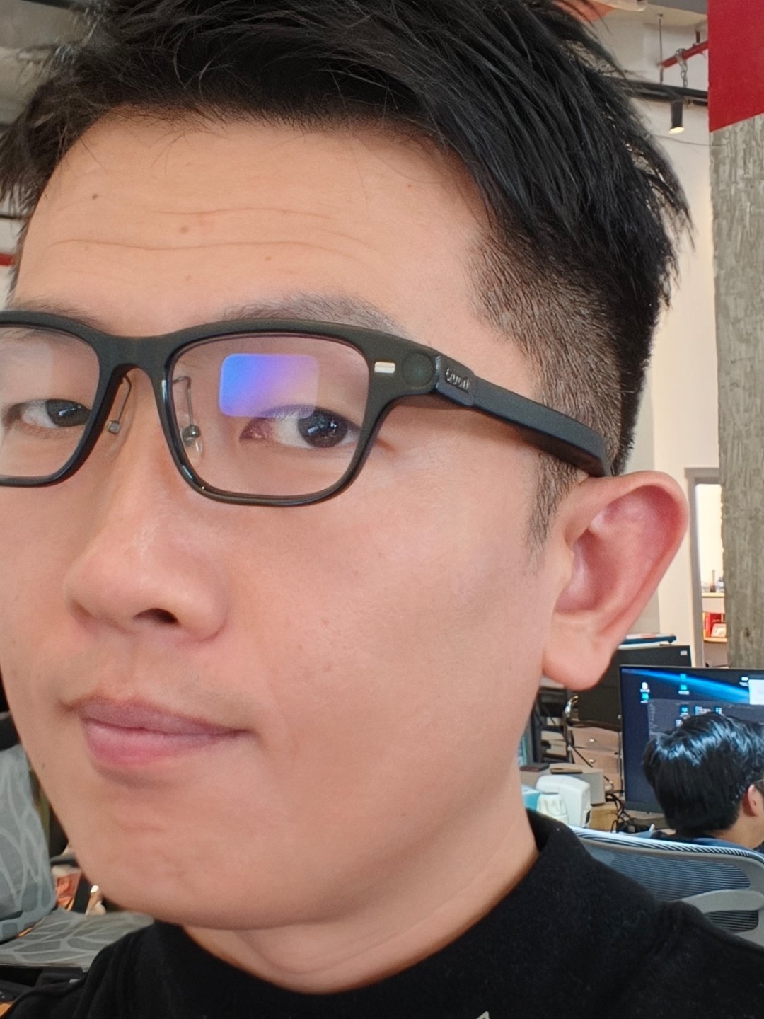 夸克眼镜,咱也是戴上了,好看吗?感受一下,镜框还不错,挺细的。显示效果也很舒服,有点意思
