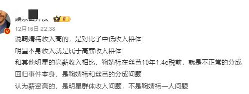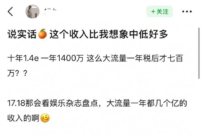 鞠婧祎十年 1.39 亿太少?别被平均算法带偏了 鞠婧祎与丝芭传媒的合同纠纷持续发酵,法律层面的是非曲直自有公断,但 “十年税前 1.39 亿” 被吐槽收入低,实在有点让人看不懂 收入哪能这么平均算?鞠婧祎刚从 SNH48 出道时,不过是团体里的一员,说句路人甲也不为过。就像普通人刚毕业入职,公司就算看好你的潜力,也不可能直接开高薪。收入从来都是跟着实力、人气水涨船高的,哪能把十年的收入一拉平,就喊着 “太低了”? 她真正走红也就是近两三年的事,转型影视圈后跻身准一线行列,资源和身价早就今非昔比。那也许前 8 年累计收入 3900 万,后两年狂揽 1 亿呢?这样算下来,近两年单年税前 5000 万,月均 400 多万,以她的咖位来看,这个收入真不算低了。 娱乐圈的收入本就远超多数行业,这也是为什么年轻人挤破头想往里闯。可就是这样的高薪,在部分粉丝眼里居然还嫌少?这让其他行业埋头苦干的普通人,情何以堪?