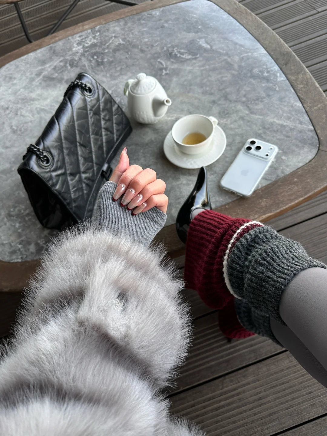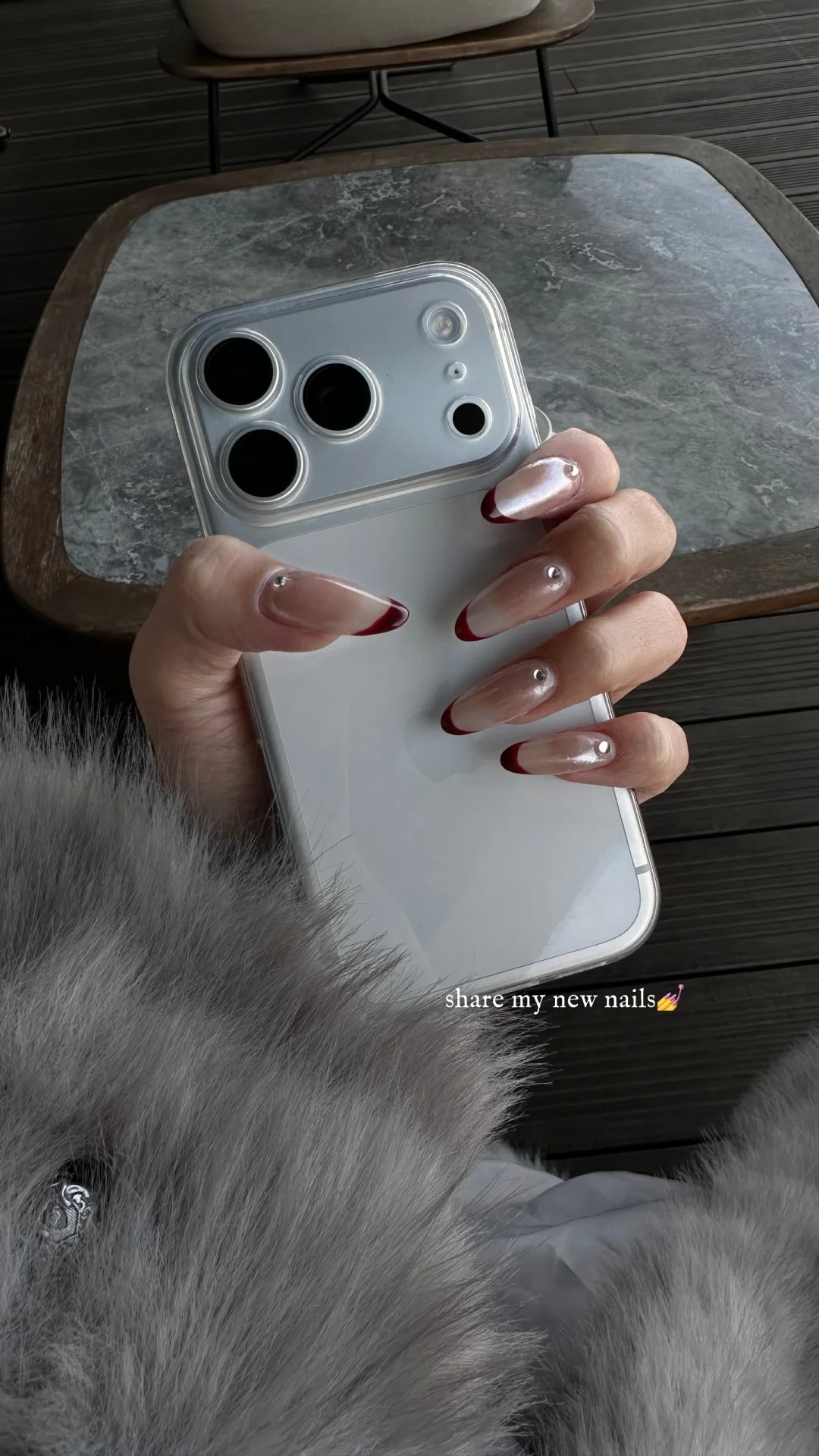 做了新美甲 灰红依旧很配 迎接圣诞月咯