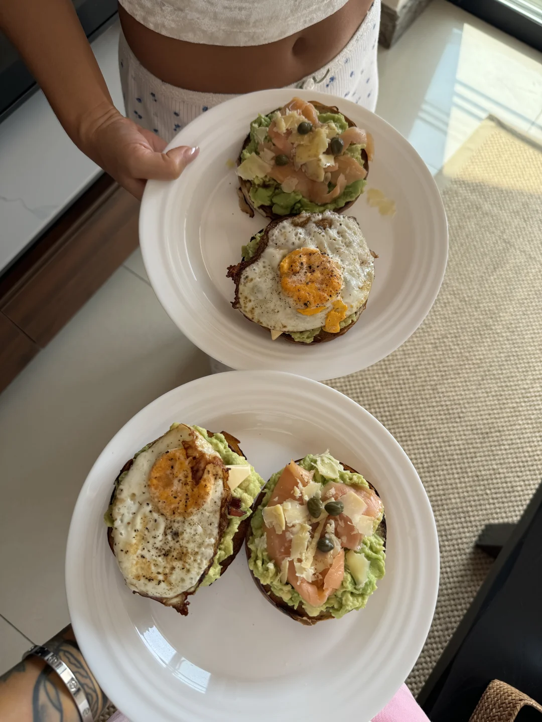 P8 👭 我的好朋友做的早餐 她每天都会给自己做这种健康有营养的早餐 一开始为了友情我会配合吃 后面我实在受不了了 各种牛油果 芝士 培根 (我都讨厌他们!)全给我加进去 有一次我说我真顶不住了 我吃不了洋人饭了😭 P9我最爱 贵州羊肉粉yyds 怎么能那么好吃??? 以前我在云南上过学那边小锅米线也很好吃 我回广州后就没吃到正宗的了😭