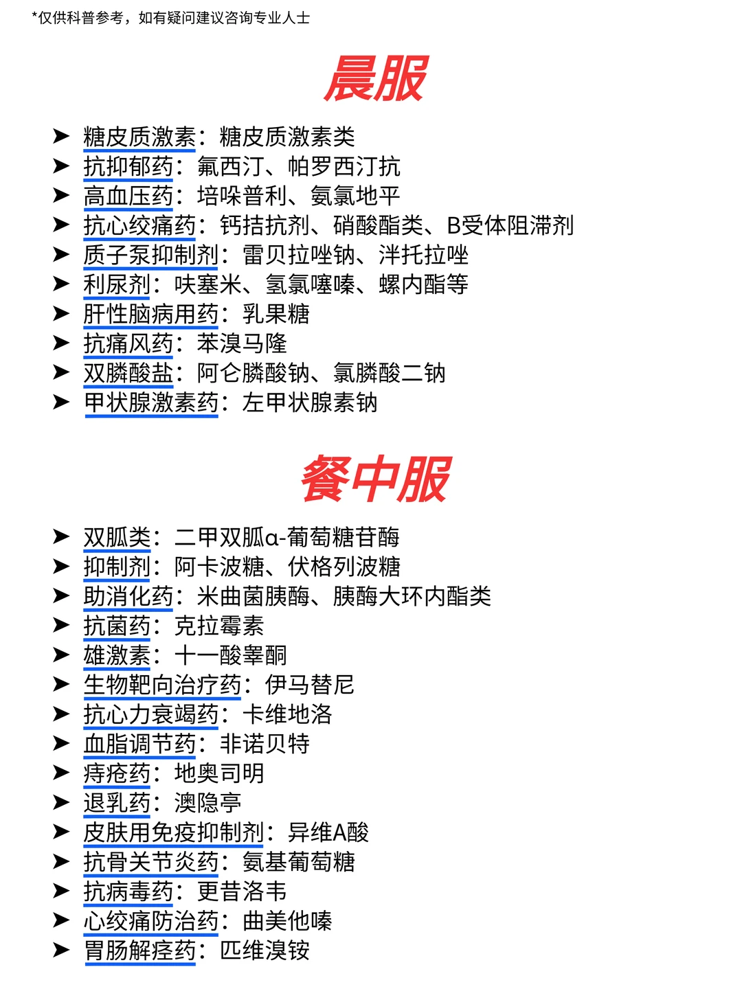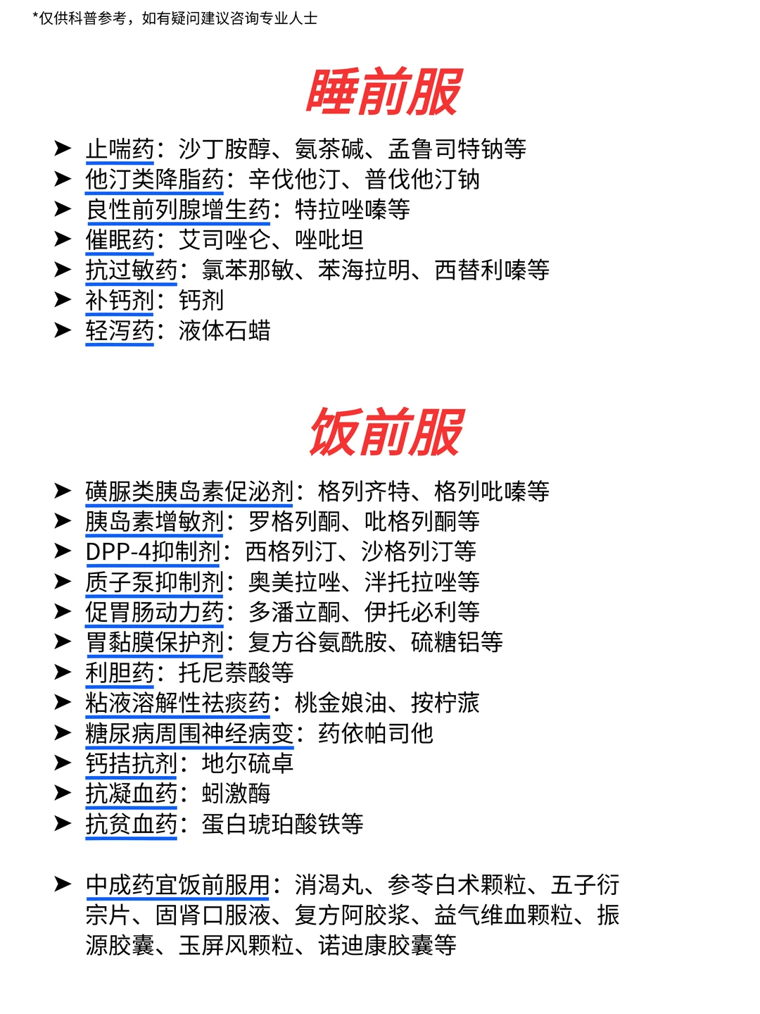 宝子们,吃💊这件事看似简单,实则暗藏玄机, 今天就给大家分享一份超全服药时间表,赶紧码住备用!