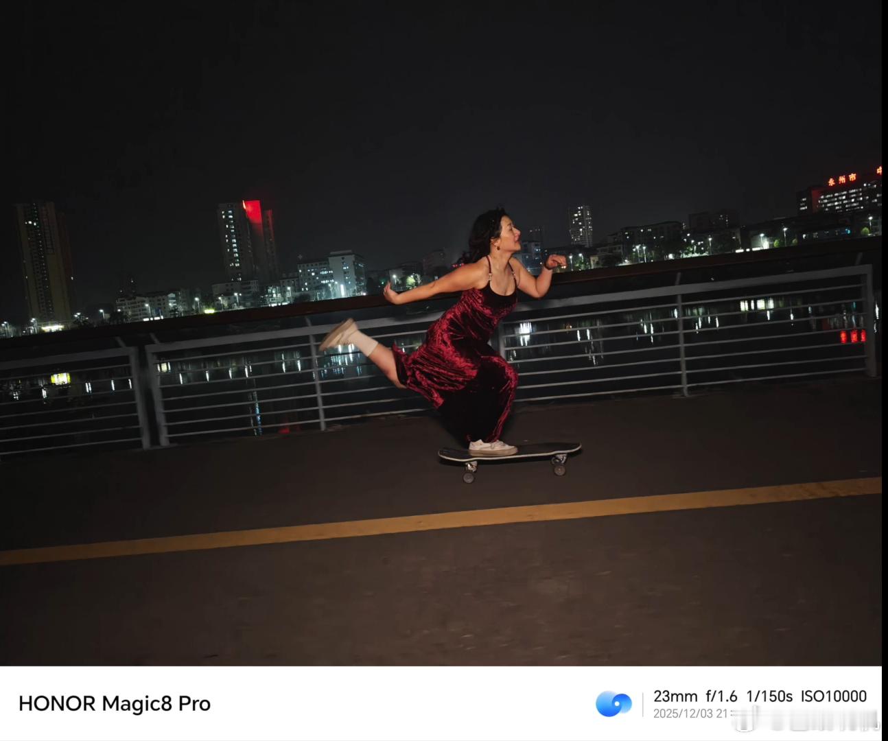 夜色里的第二人生 夜幕降临,卸下了社会身份,开始做回最真实的自己,无论是脱下西装经营食堂还是放下家务踏上滑板,在你发光的每个时刻,荣耀Magic8系列都在陪伴着你。5000万超夜神主摄+2亿超夜神长焦+CIPA5.5级防抖,再加上AI夜神引擎,这一整套下来,无惧黑暗和光线杂乱,奔跑起来也稳如云台,轻松帮你抓住每个精彩瞬间。